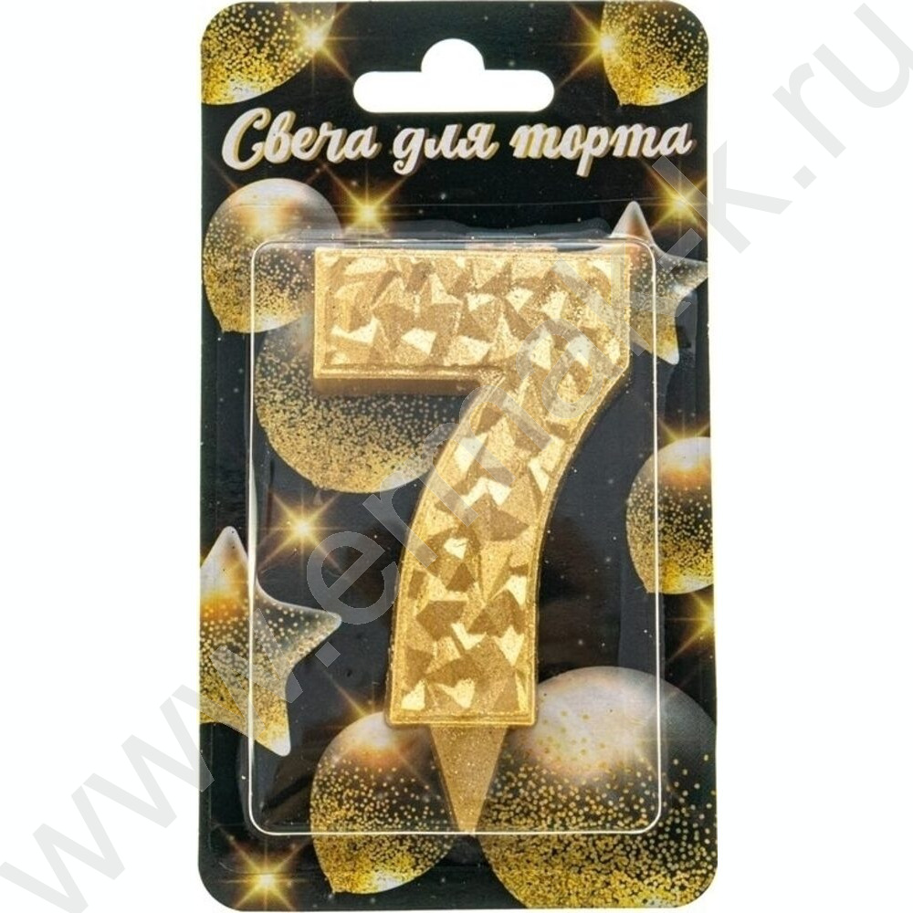 Свеча -цифра "7" тортовые Айсберг золотая с блеском