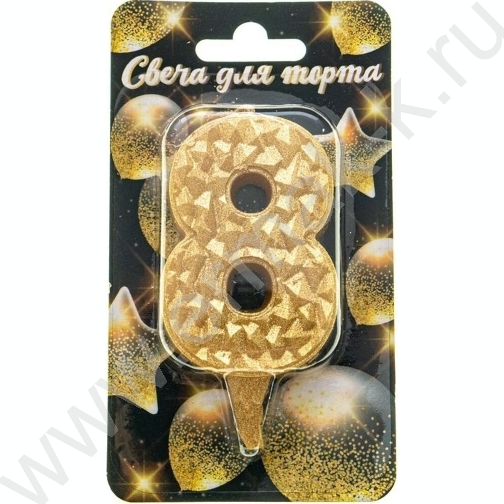 Свеча -цифра "8" тортовые Айсберг золотая с блеском