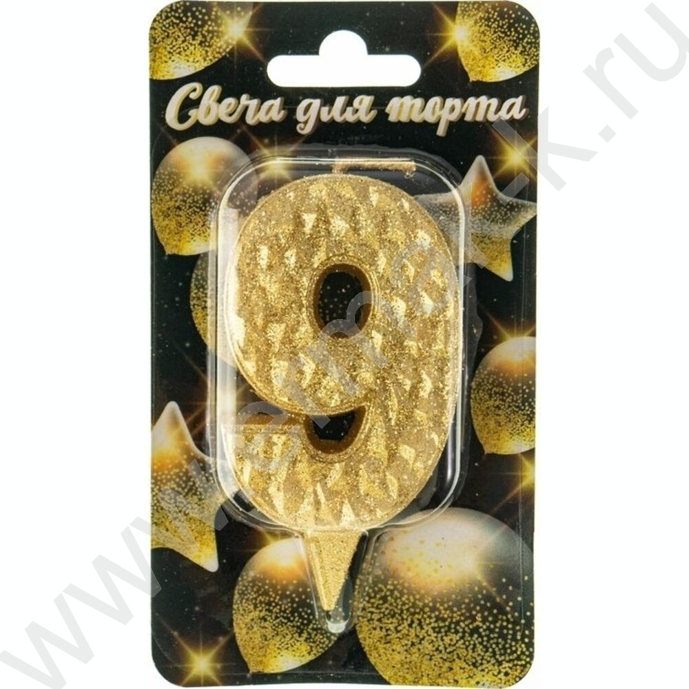 Свеча -цифра "9" тортовые Айсберг золотая с блеском