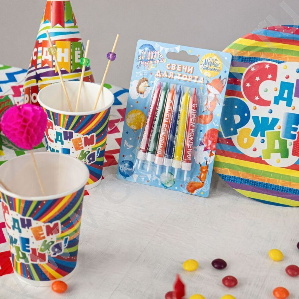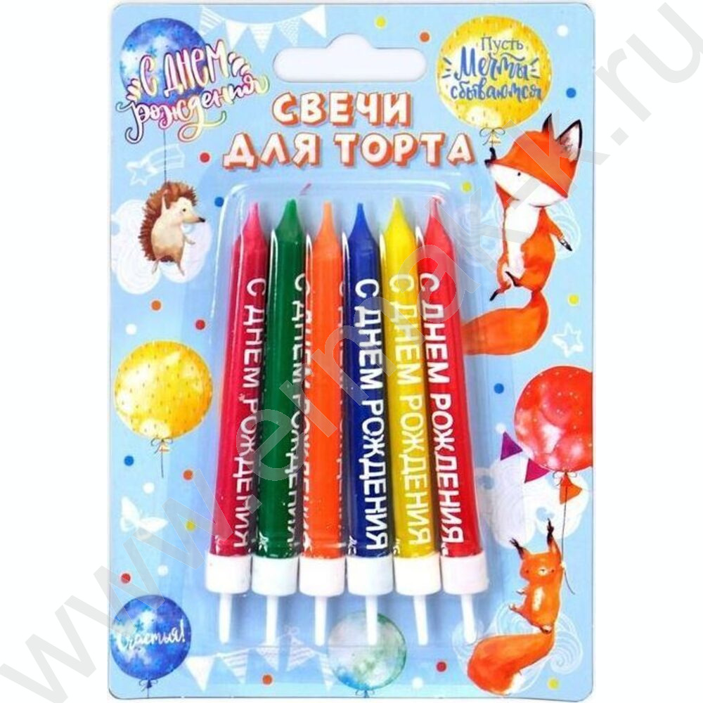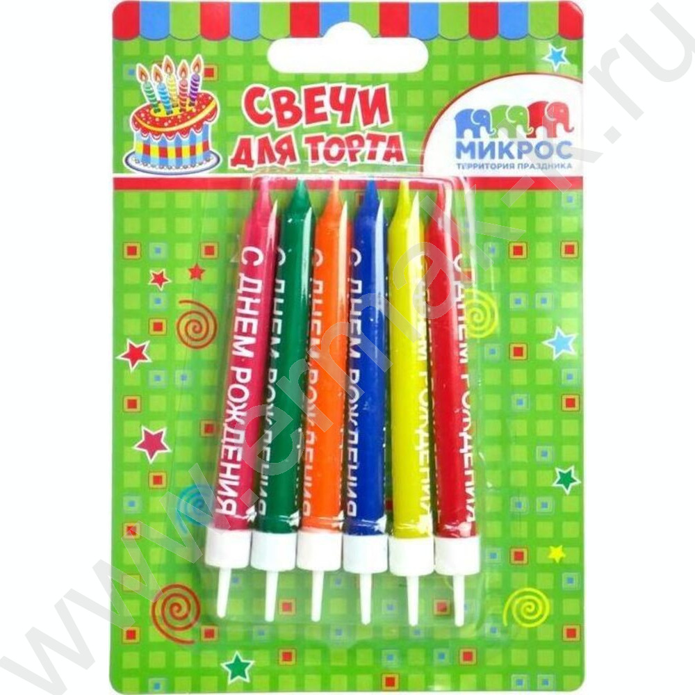 Свечи д/торта "С Днем Рождения" 8 см с держателями 6шт/уп