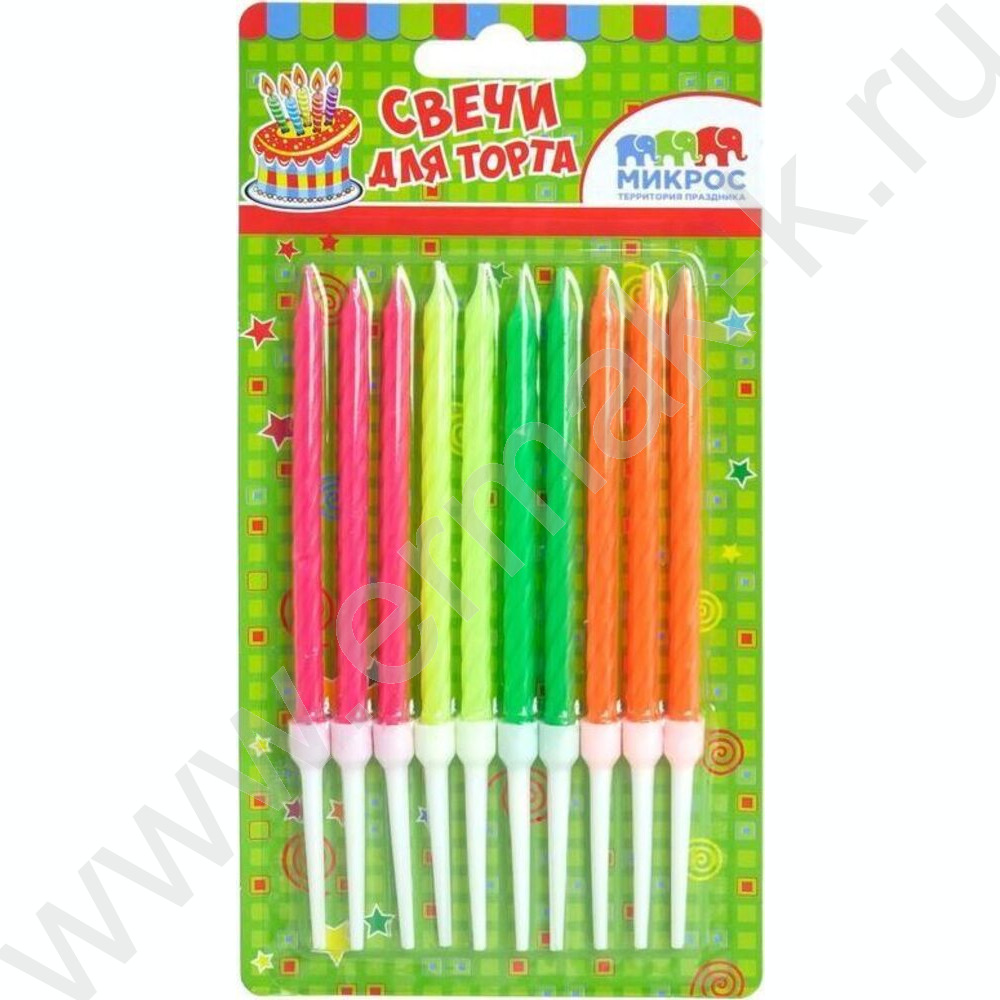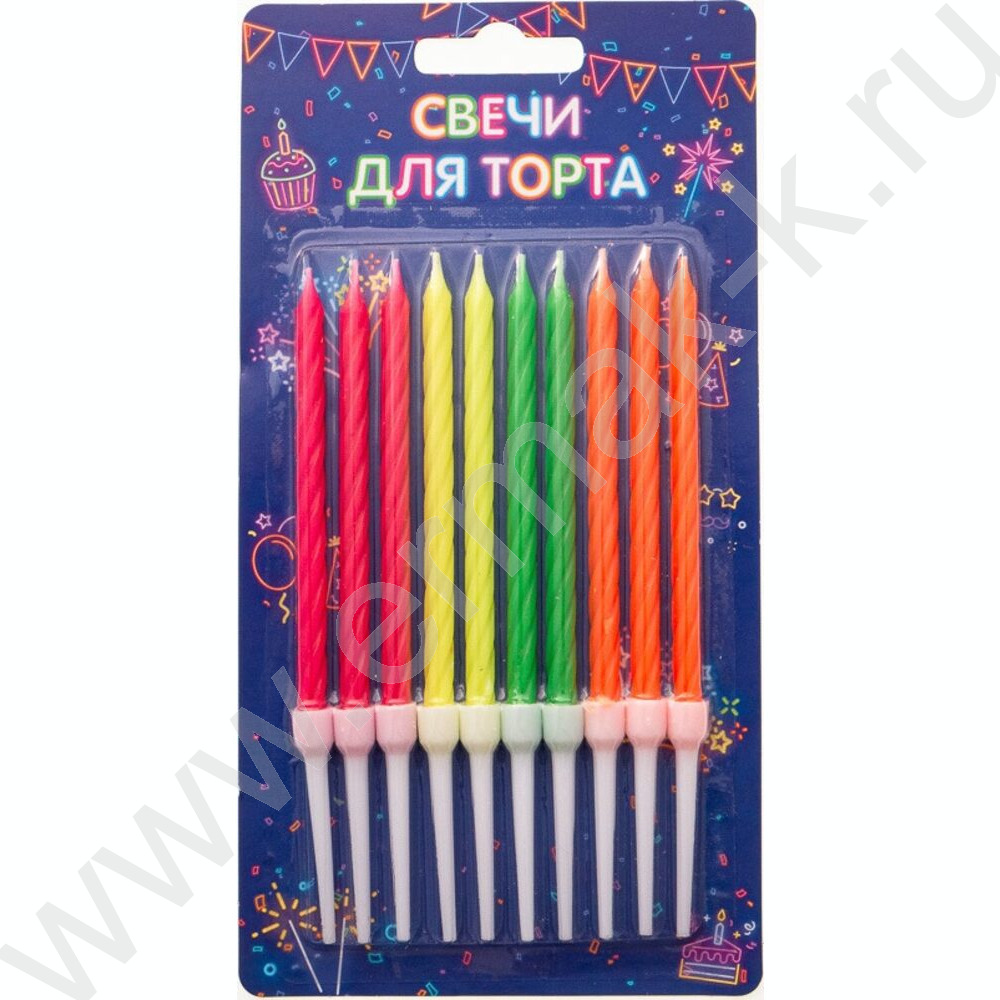 Свечи д/торта "Неон" 10см с держателями 4,8 см 10шт/уп