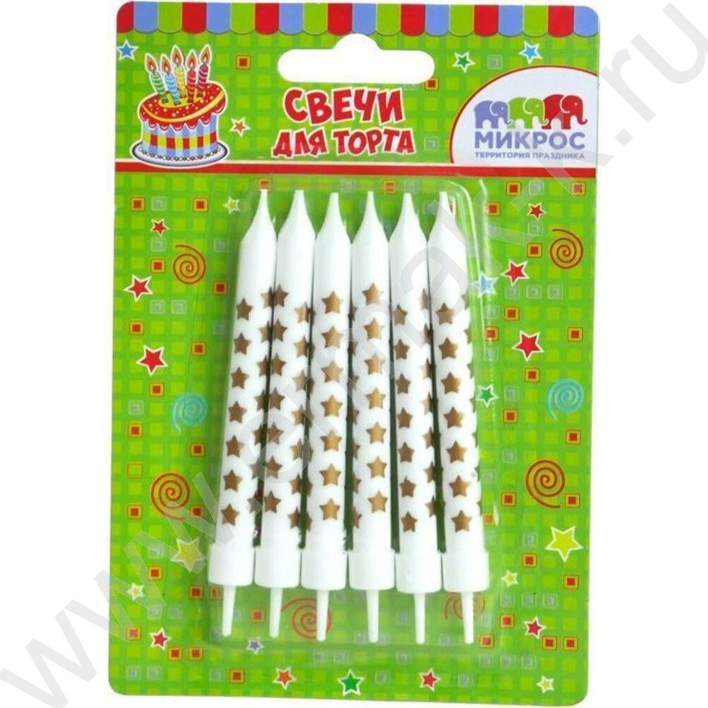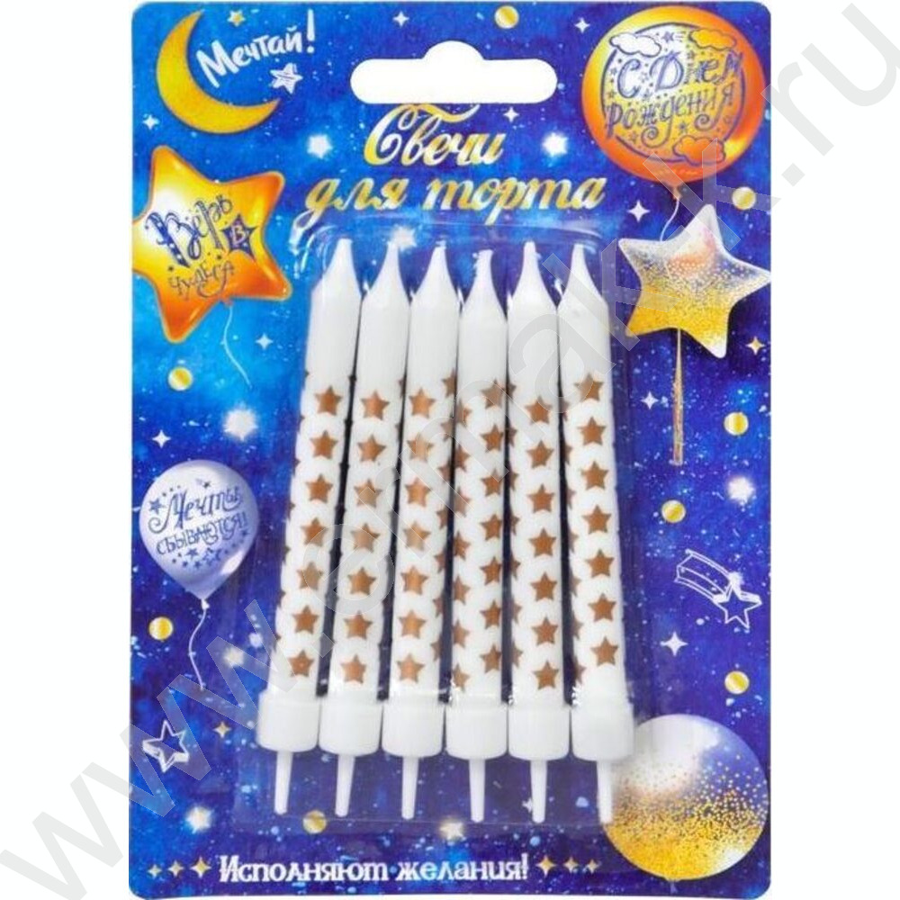 Свечи д/торта "Звезды золото" 8 см с держателями 6шт/уп