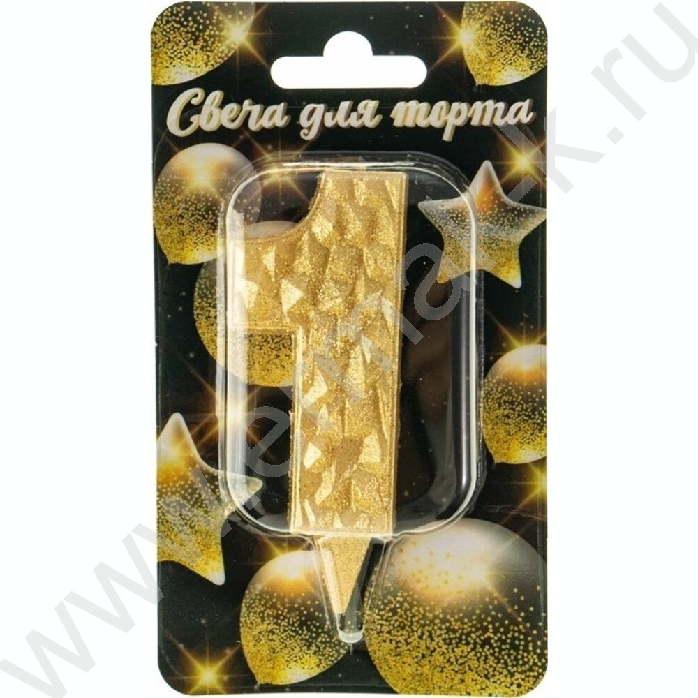Свеча -цифра "1" тортовые Айсберг золотая с блеском