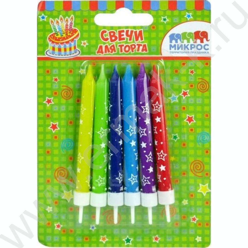 Свечи д/торта "Звезды" 8 см с держателями 6шт/уп