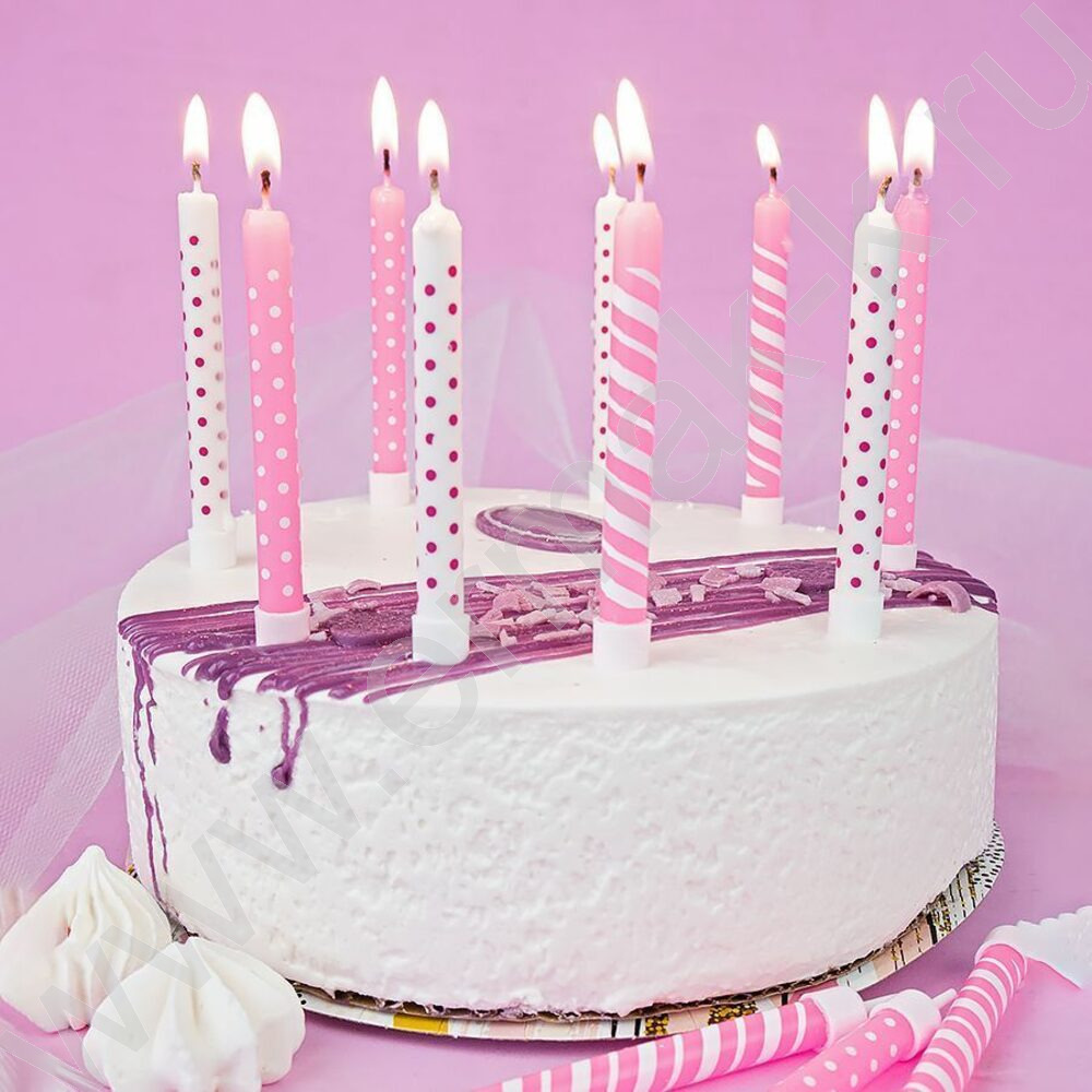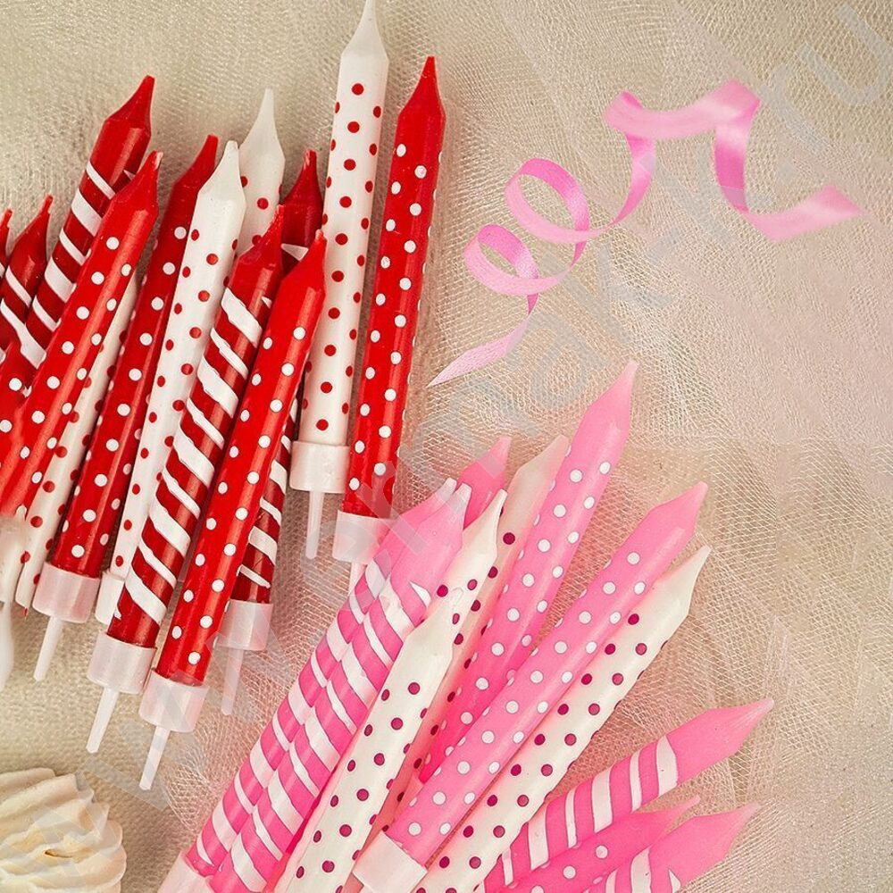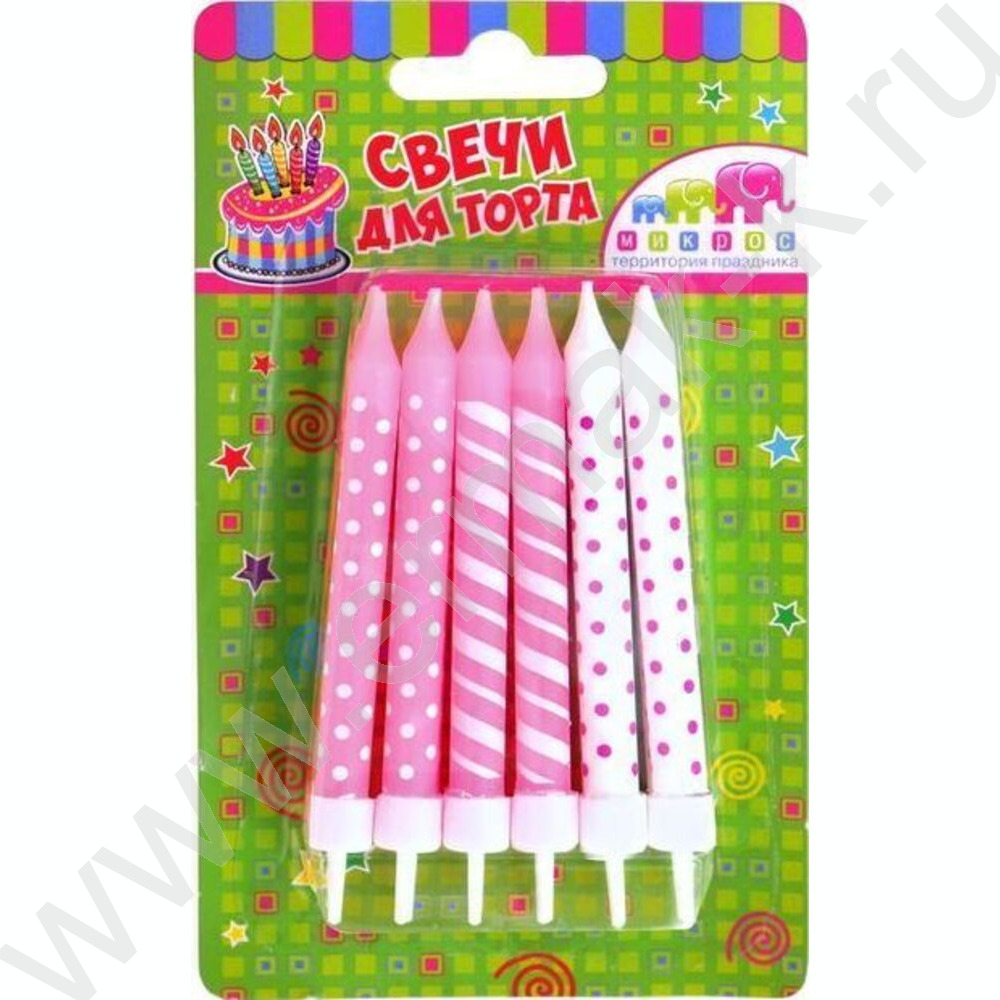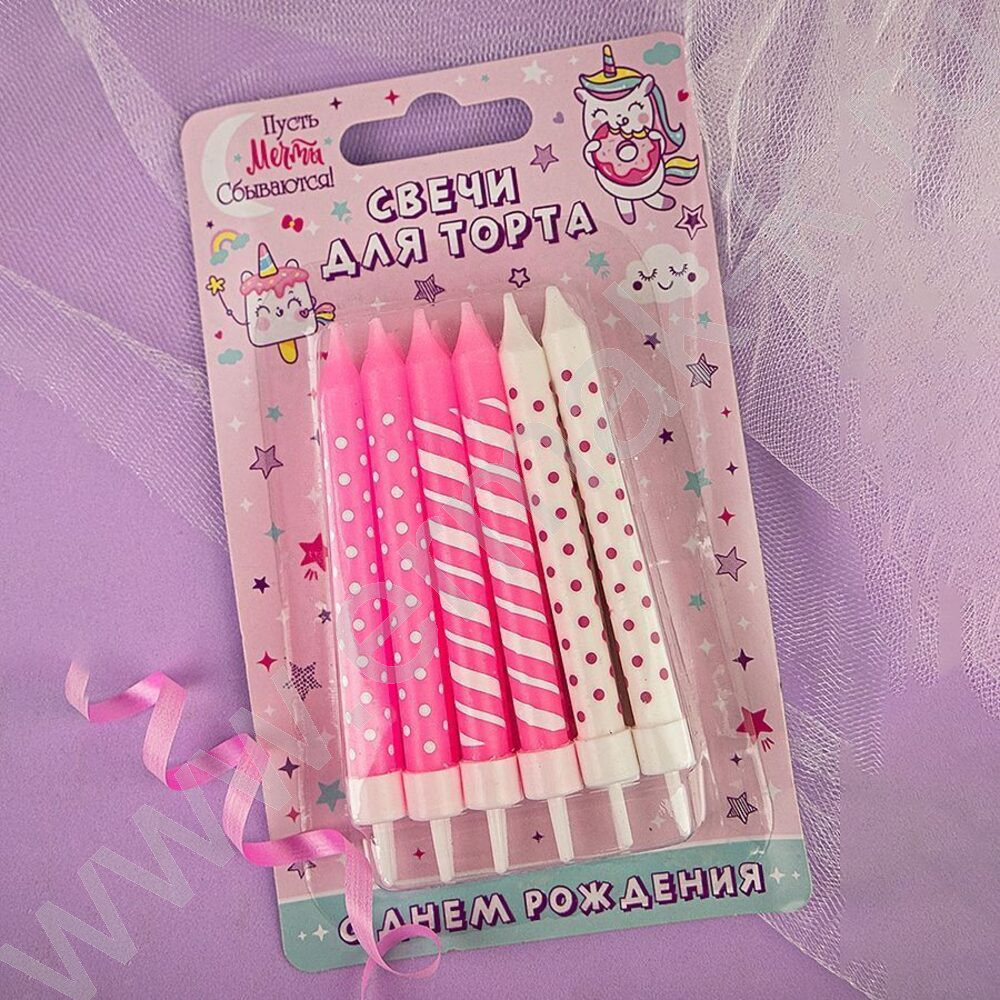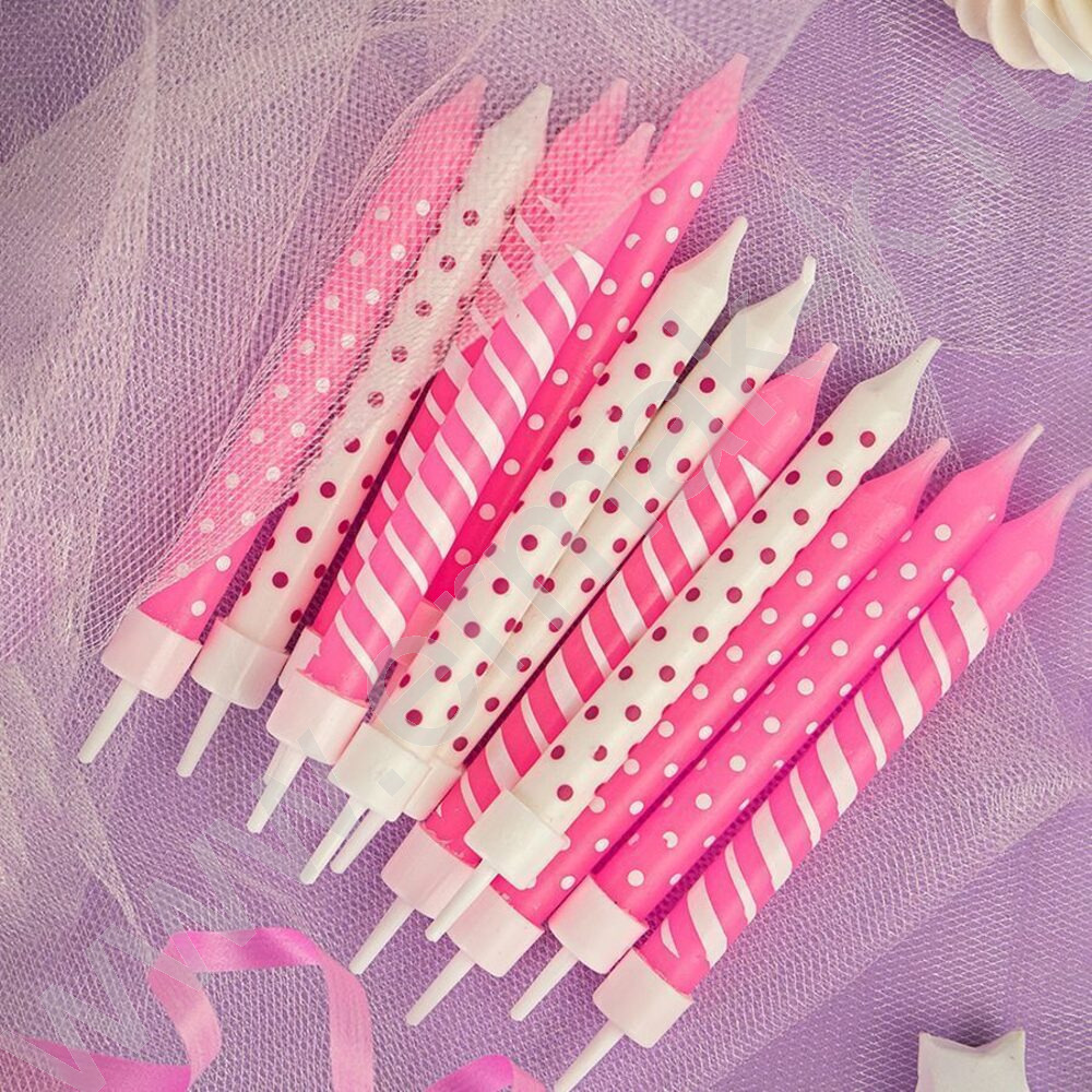 Свечи д/торта "Розовое ассорти" 8 см с держателями 12шт/уп