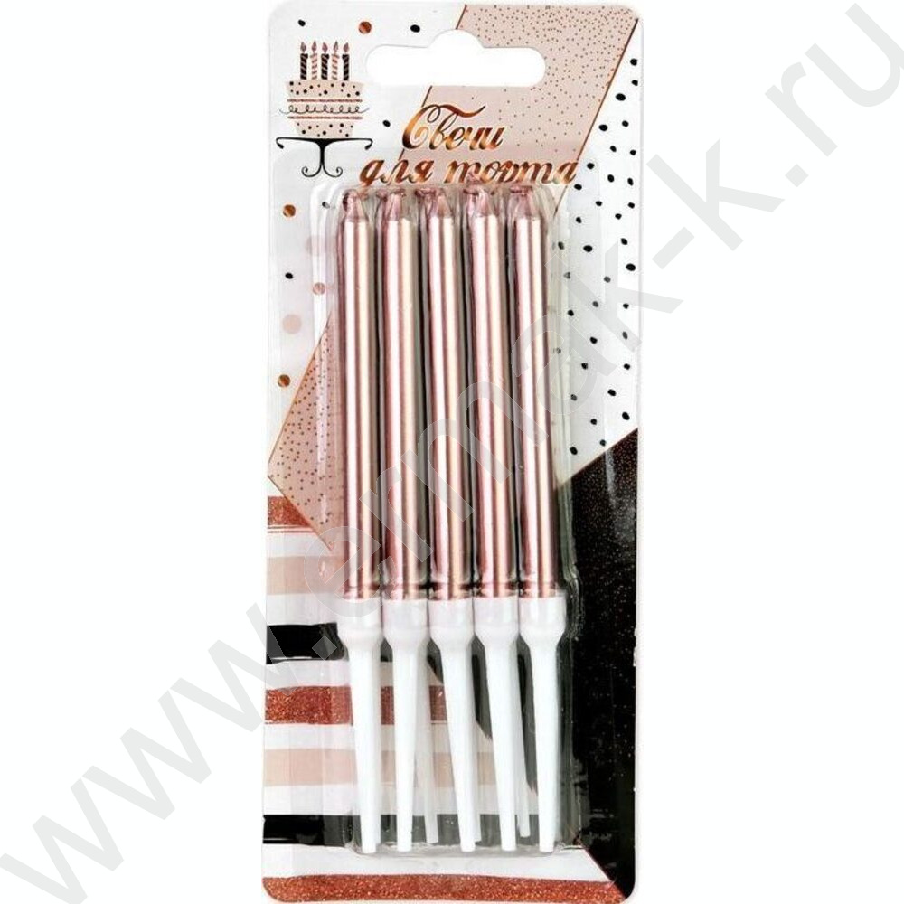 Свечи д/торта розовое золото 8 см с держателями /10шт/уп