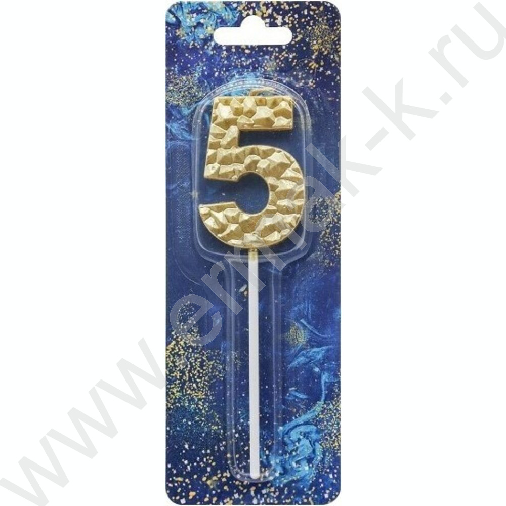 Свеча -цифра "5" тортовые Кристалл золото 5см