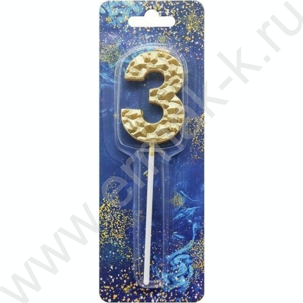 Свеча -цифра "3" тортовые Кристалл золото 5см