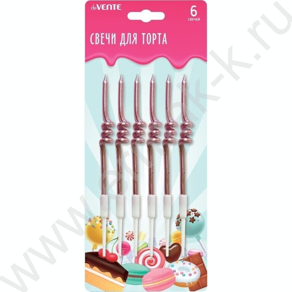 Набор свечей для торта "Pink Metallic Wave" 6 свечек 6,5*0,5см+6 держателей, розовый металлик NEW