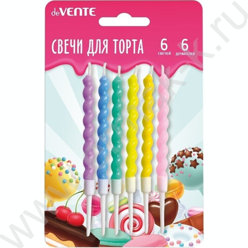 Набор свечей для торта "Pastel Set" 6 пастельных спираль. свечек 7,5*0,55см+6 держателей /блисте NEW