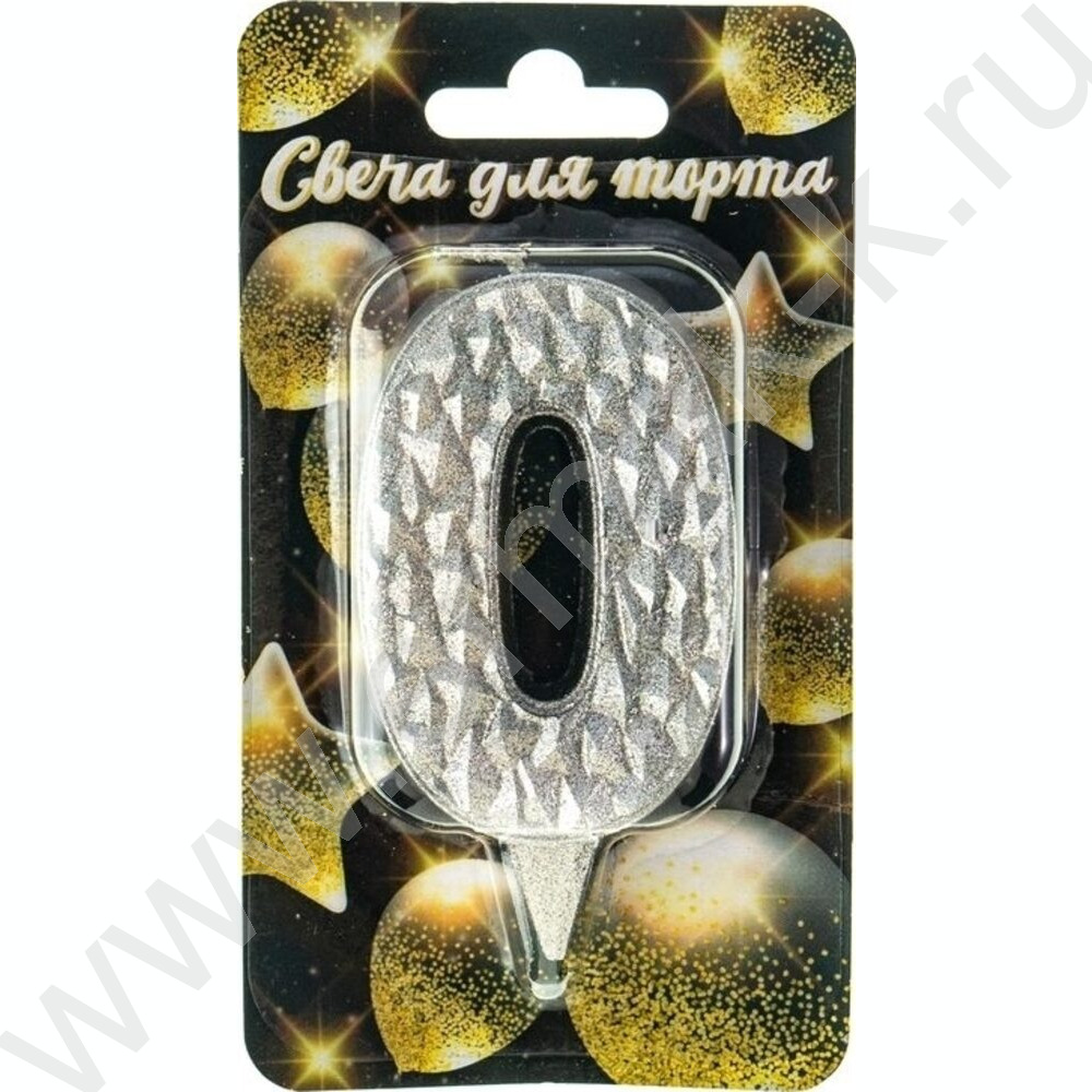 Свеча -цифра "0" тортовые Айсберг серебряная с блеском