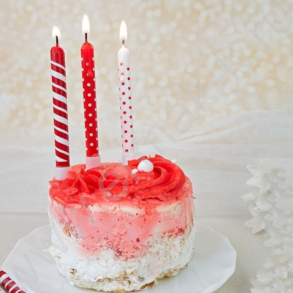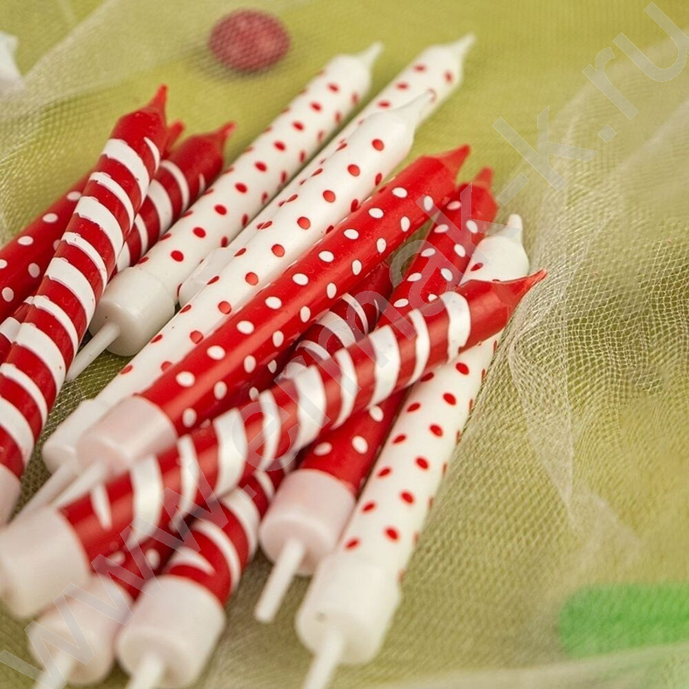 Свечи д/торта "Красное ассорти" 8 см с держателями 12шт/уп