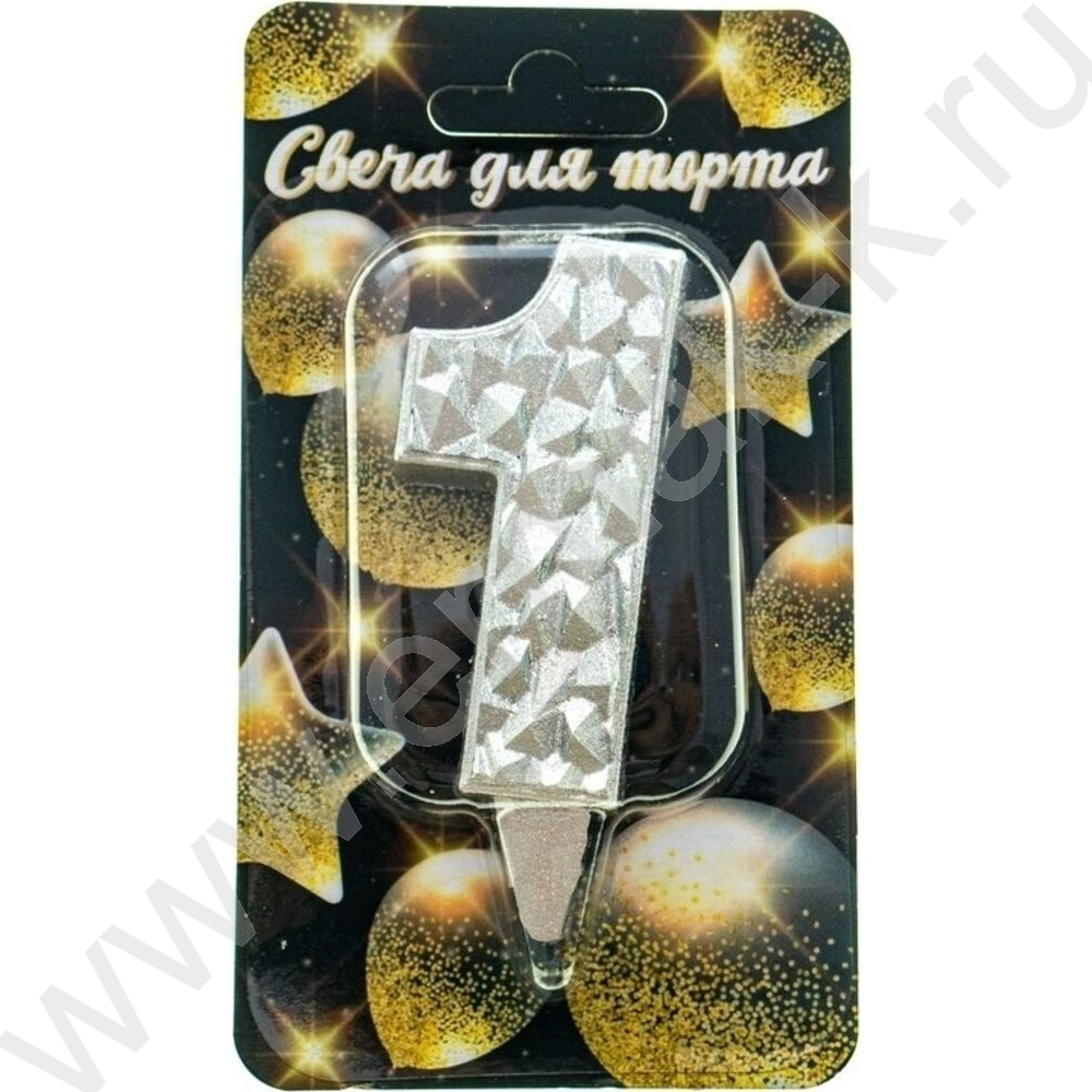 Свеча -цифра "1" тортовые Айсберг серебряная с блеском