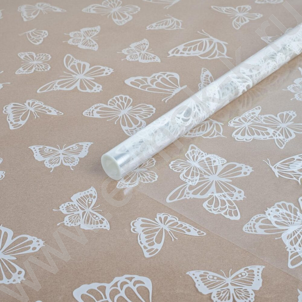 Пленка упаковочная 0,7*7,5м 40мкм 200гр прозрачная с рисунком "Бабочки" Белый