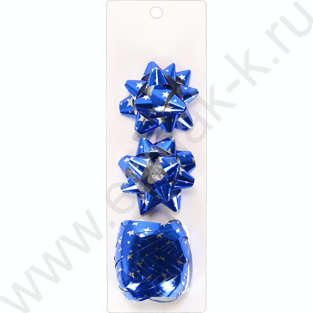 Набор для оформления подарков Синий 2 банта+2 ленты 5мм*10м