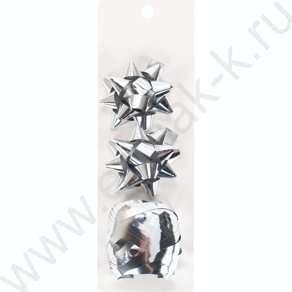 Набор для оформления подарков Серебряный 2 банта+лента 5 мм*10м