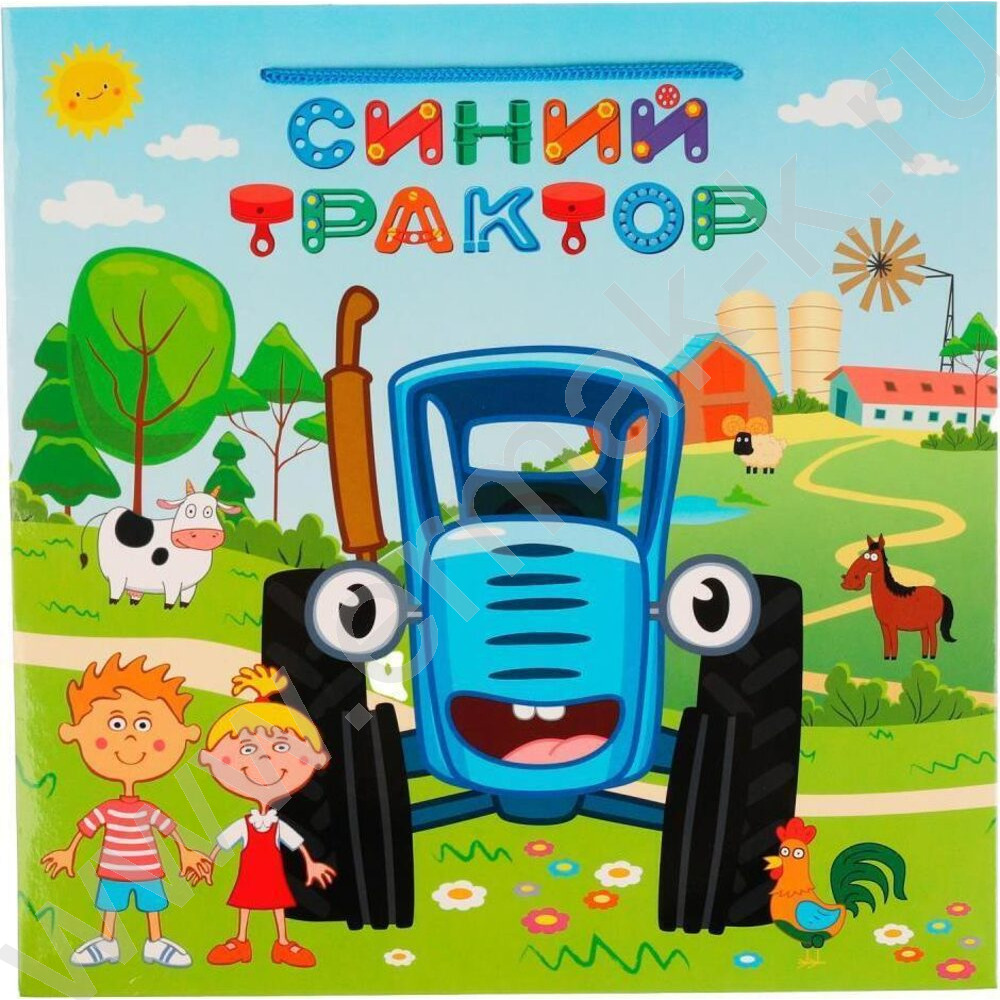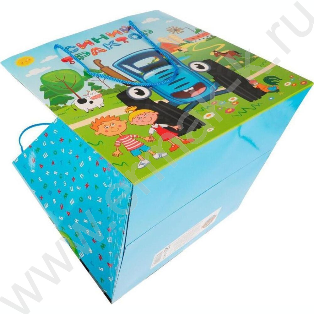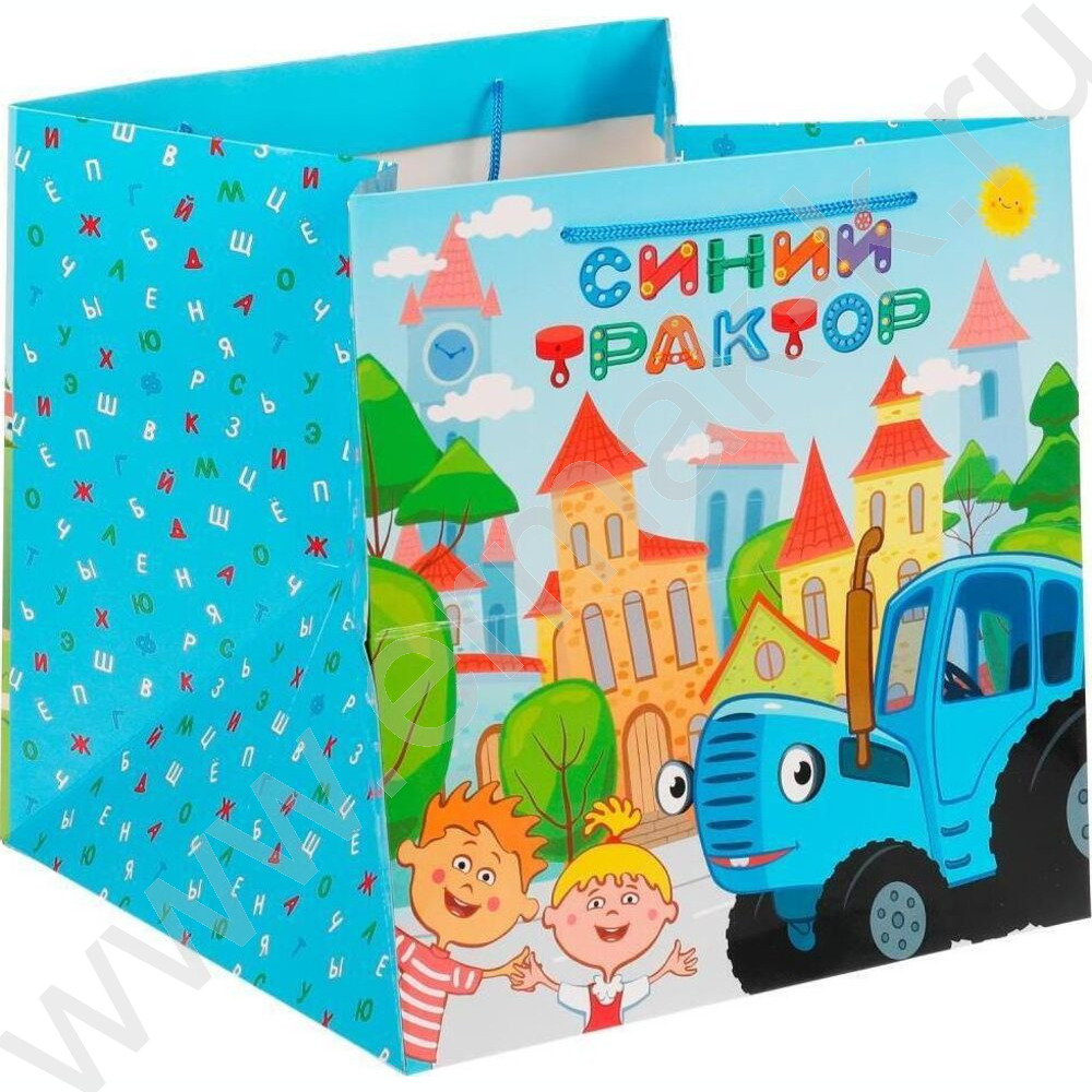 Пакет подарочный бумажный 30*30*30см Синий Трактор