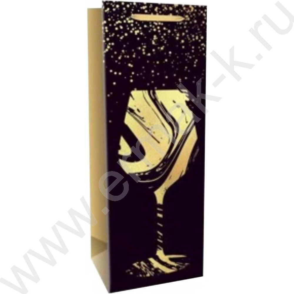 Пакет подарочный с матовой лам..золотист.тис. 210гр 12*35*10см (Бутылка) Бокал с игристым