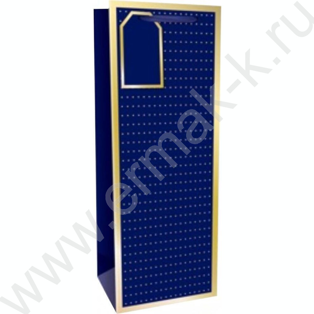 Пакет подарочный с матовой лам..золотист.тис. 210гр 12*35*10см (Бутылка) Винтаж, синий
