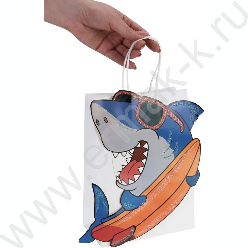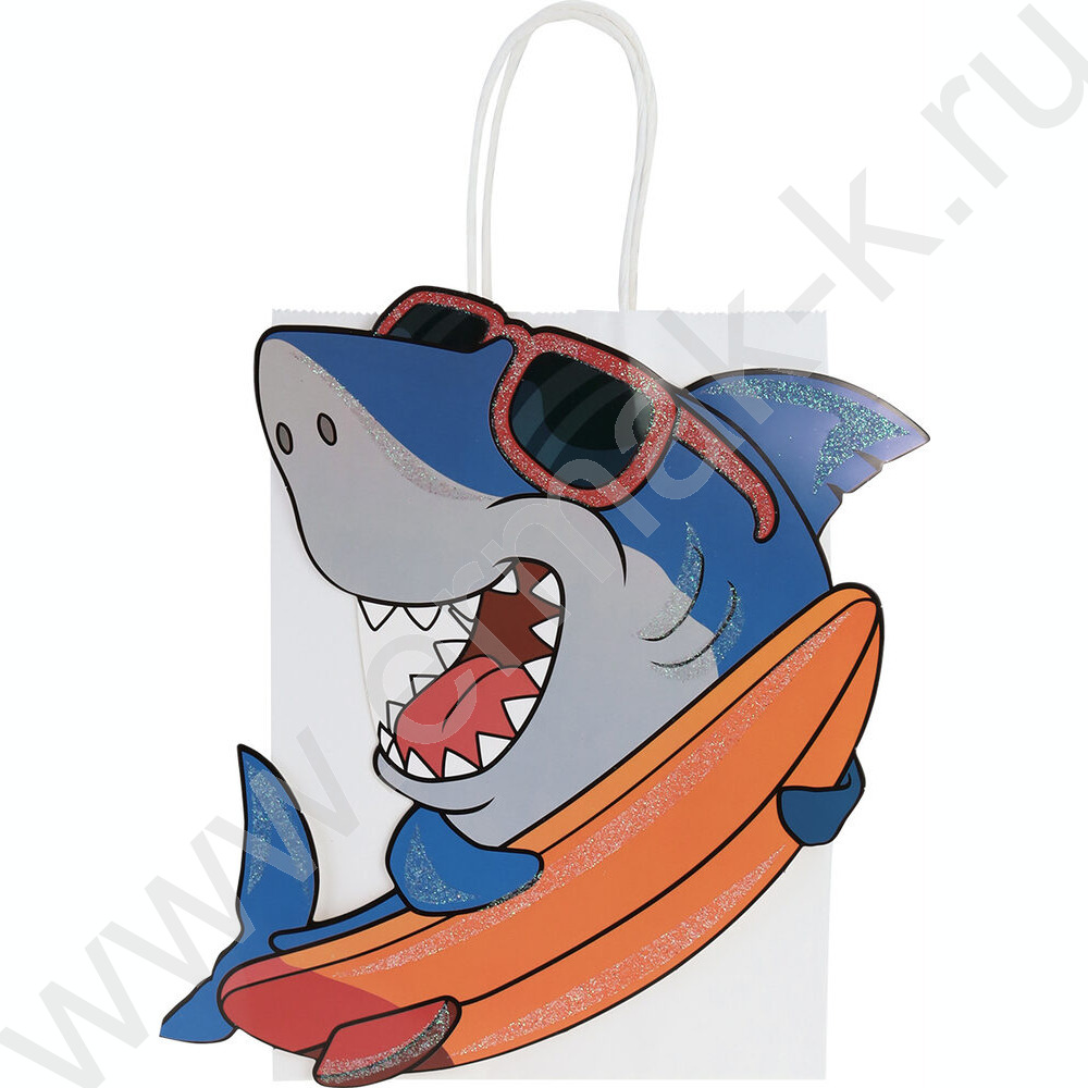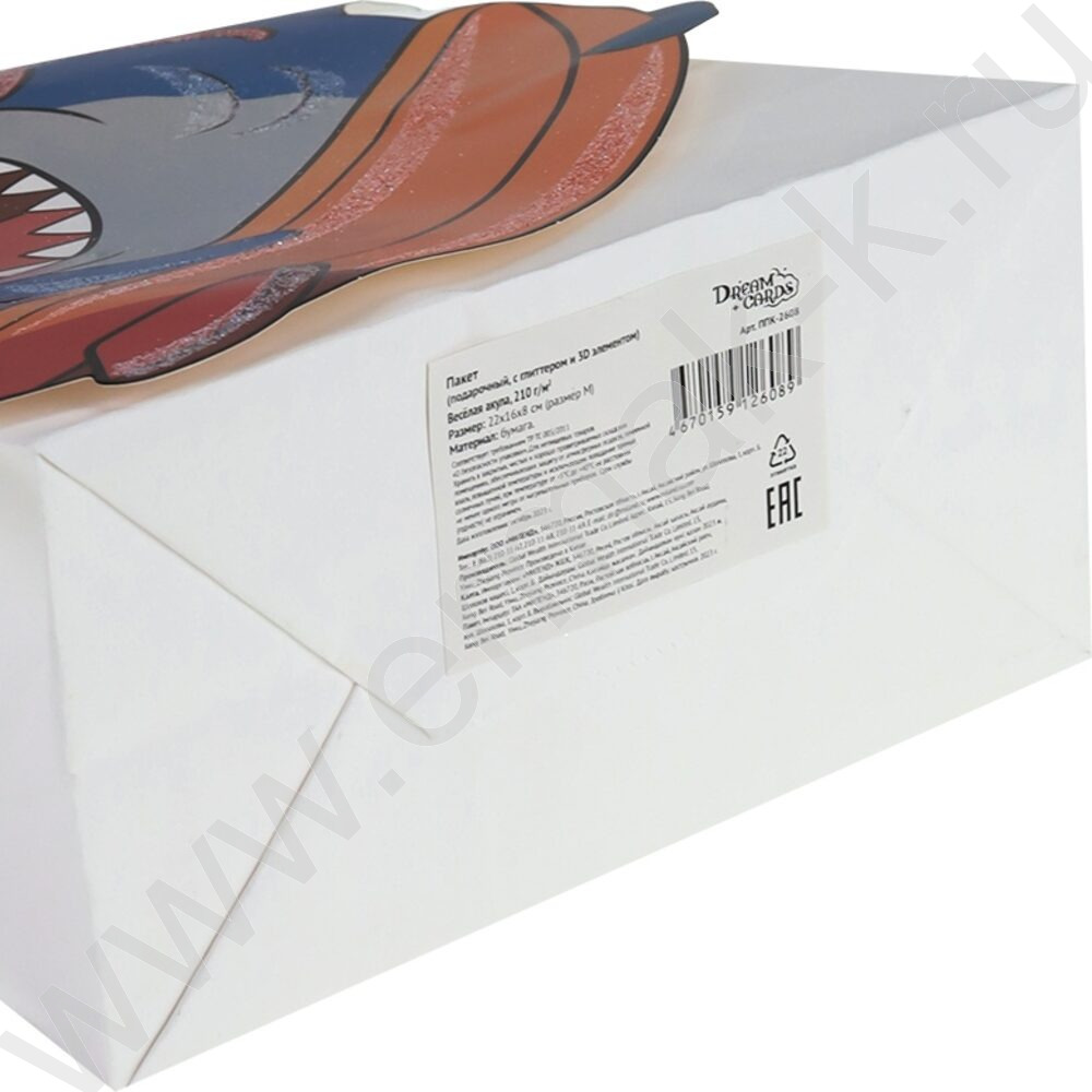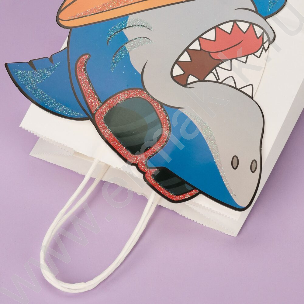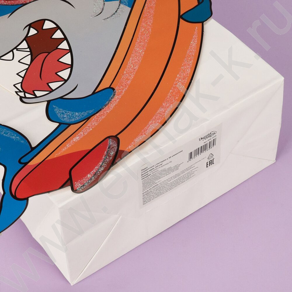 Пакет подарочный глит. и 3D элементом 210гр 18*23*10см (M) Веселая акула