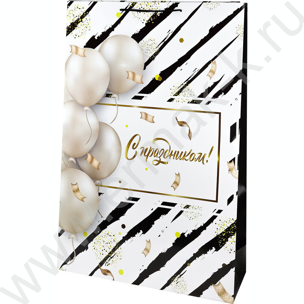 Пакет подарочный с глянцевой лам.180гр 50*72*16см Белые шары