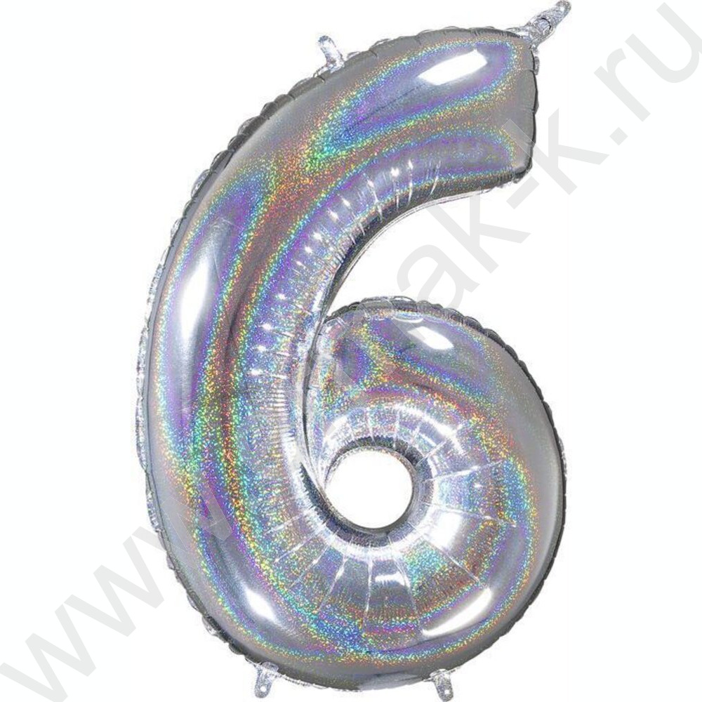 Шар воздушный 40" Цифра 6 голография серебро /Silver 102см