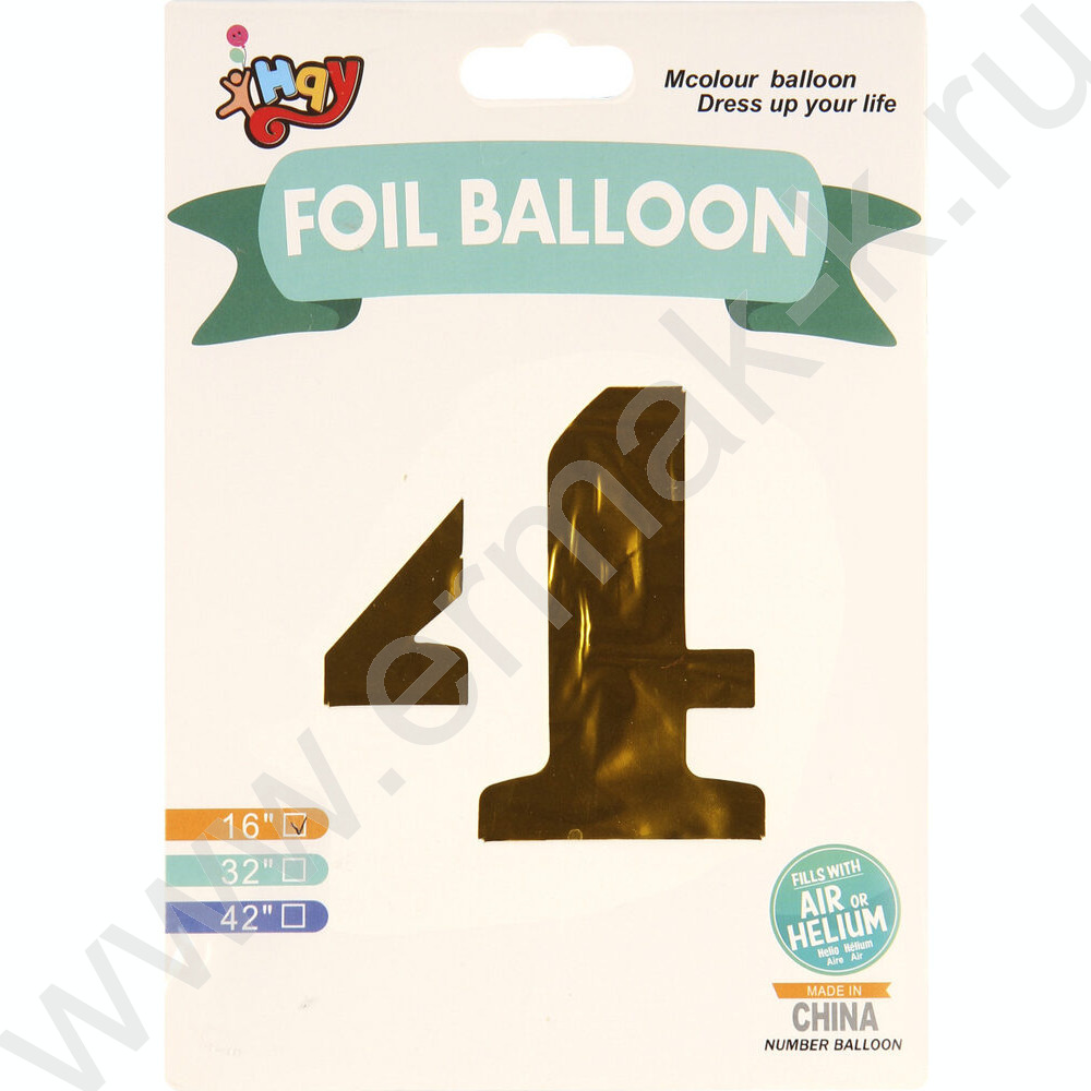 Шар воздушный фольгированный Цифра 4 45см золото