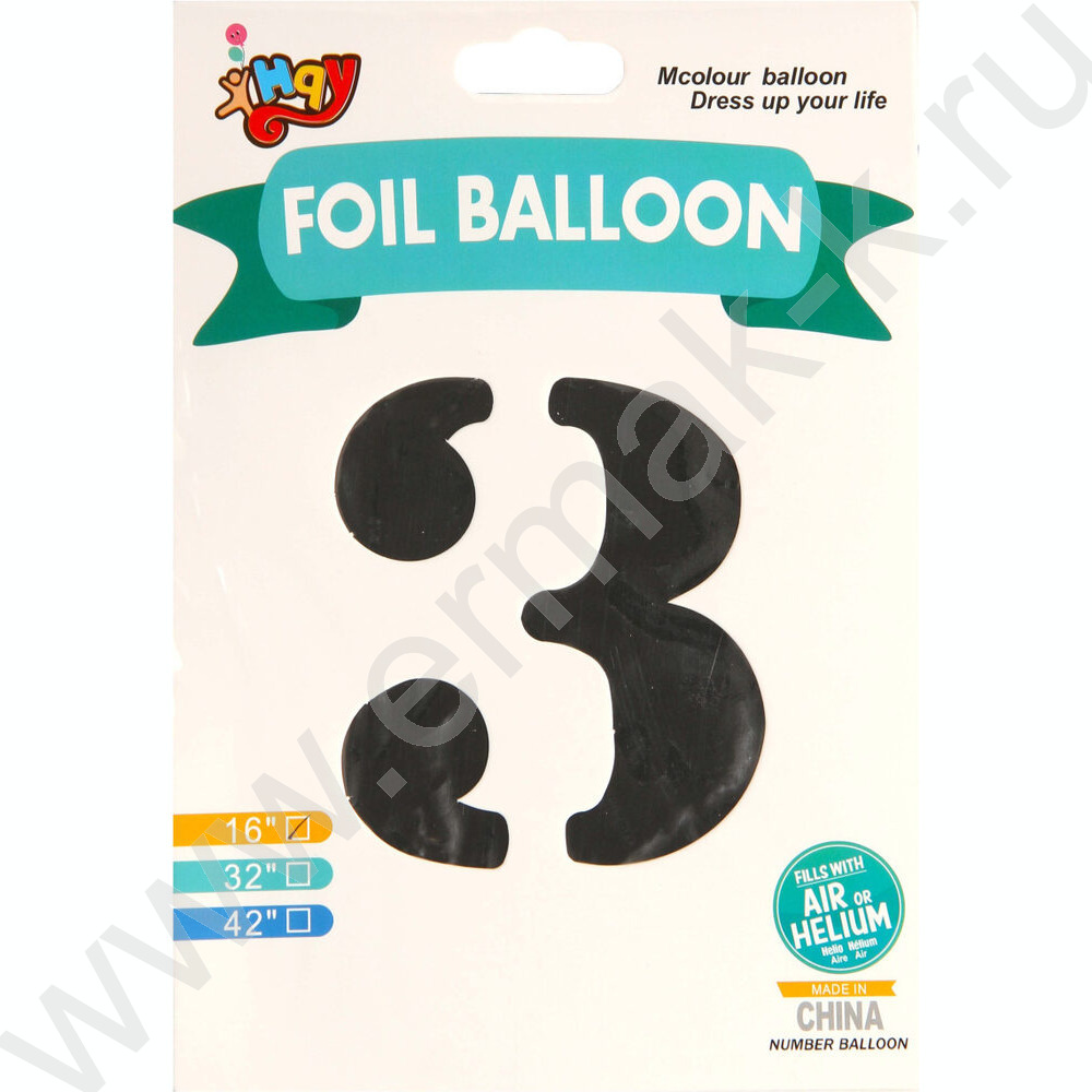 Шар воздушный фольгированный Цифра 3 45см серебро