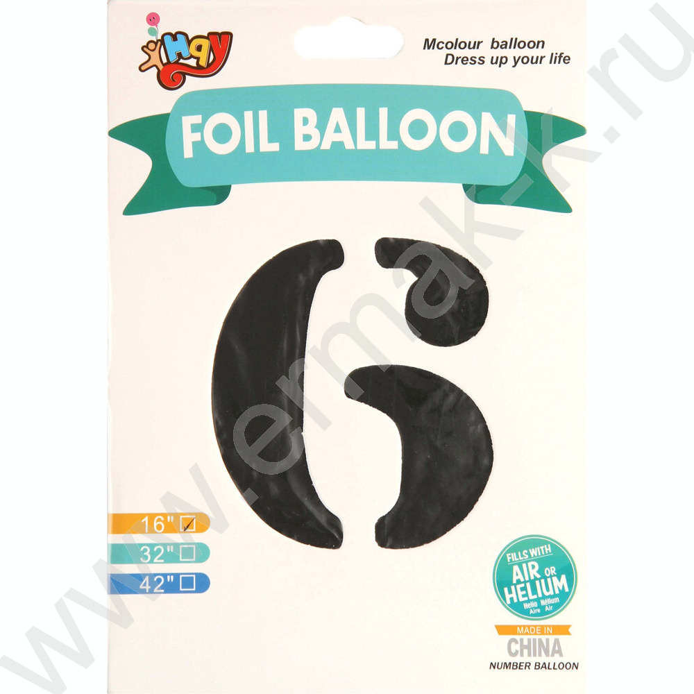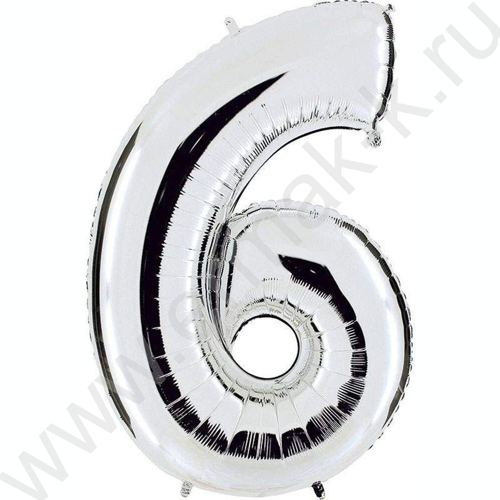Шар воздушный фольгированный Цифра 6 45см серебро