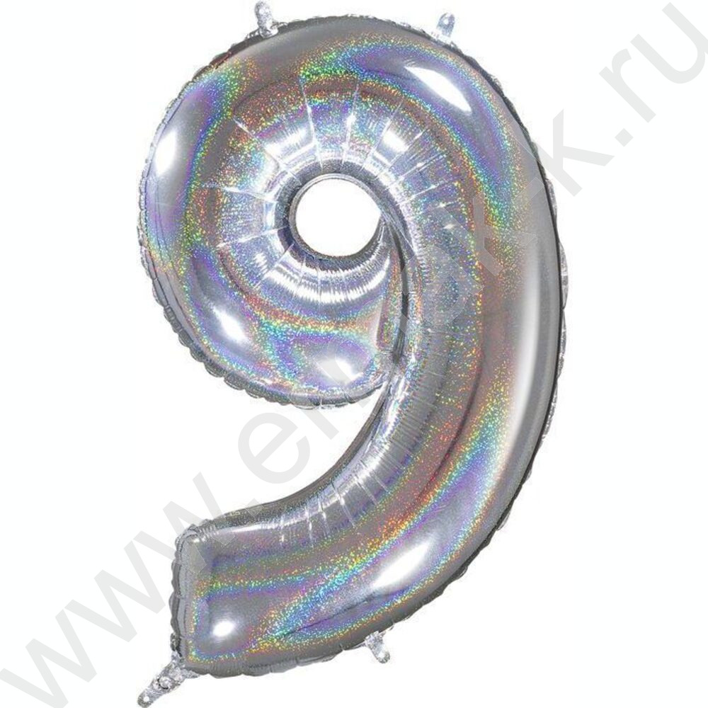Шар воздушный 40" Цифра 9 голография серебро /Silver 102см