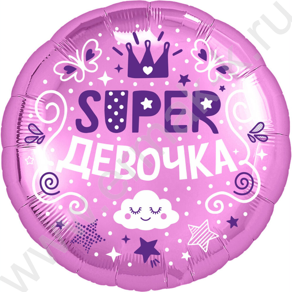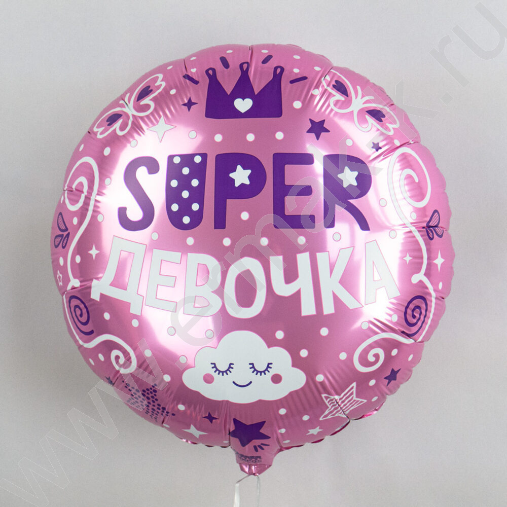 Шар воздушный 18" Фигура Круг Супер девочка 46см