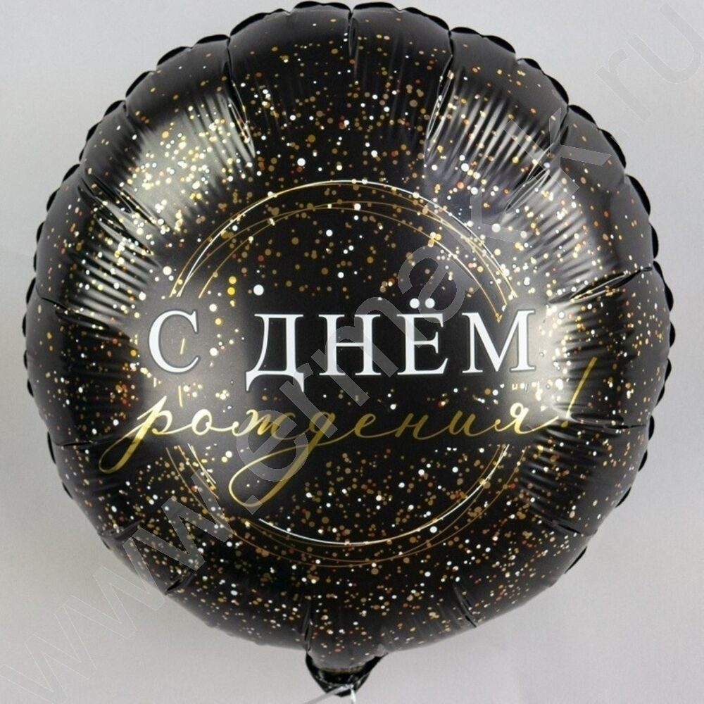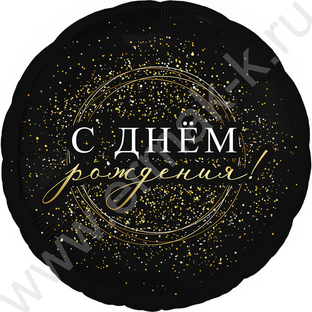 Шар воздушный 18" Фигура Круг С днем рожденья! Черное золото 46см