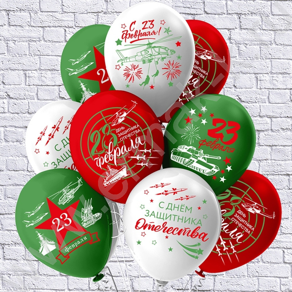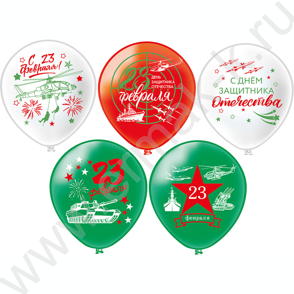 Шар воздушный 12" шелк рис. 1ст Праздник 23 Февраля! 5дизайнов
