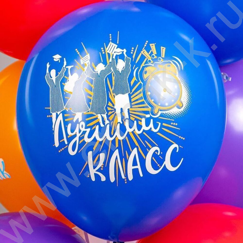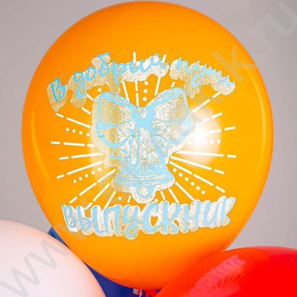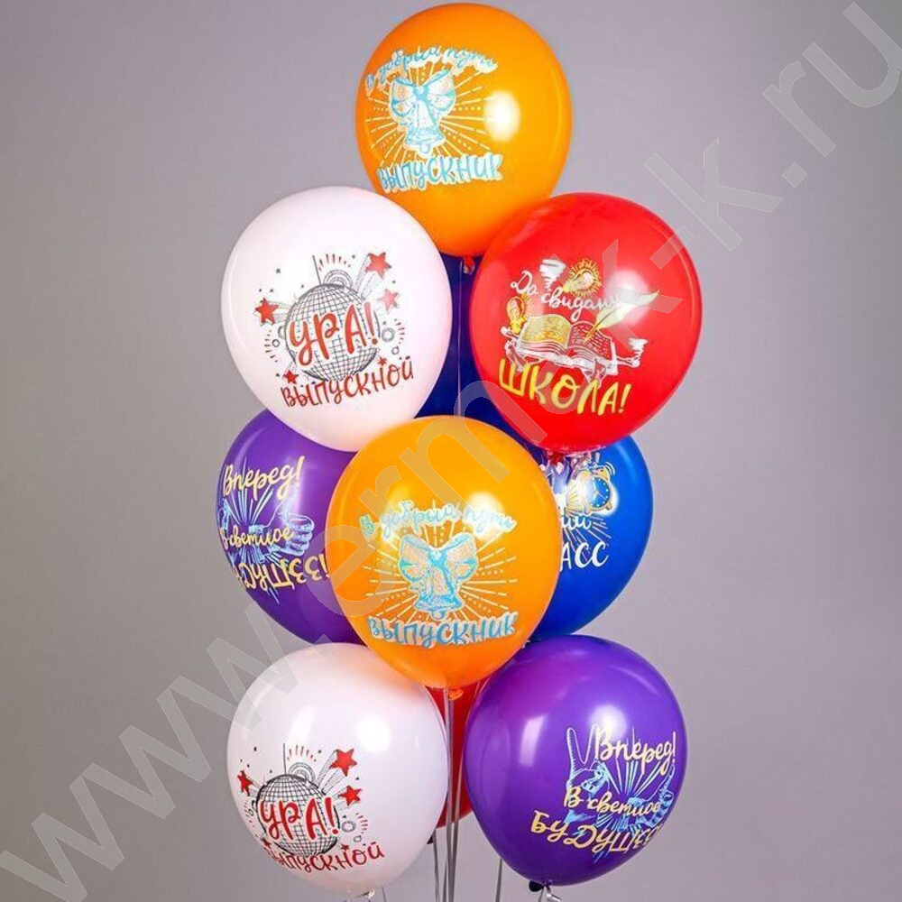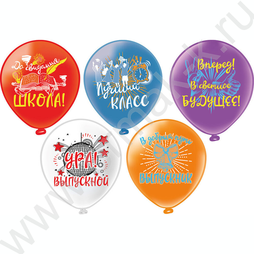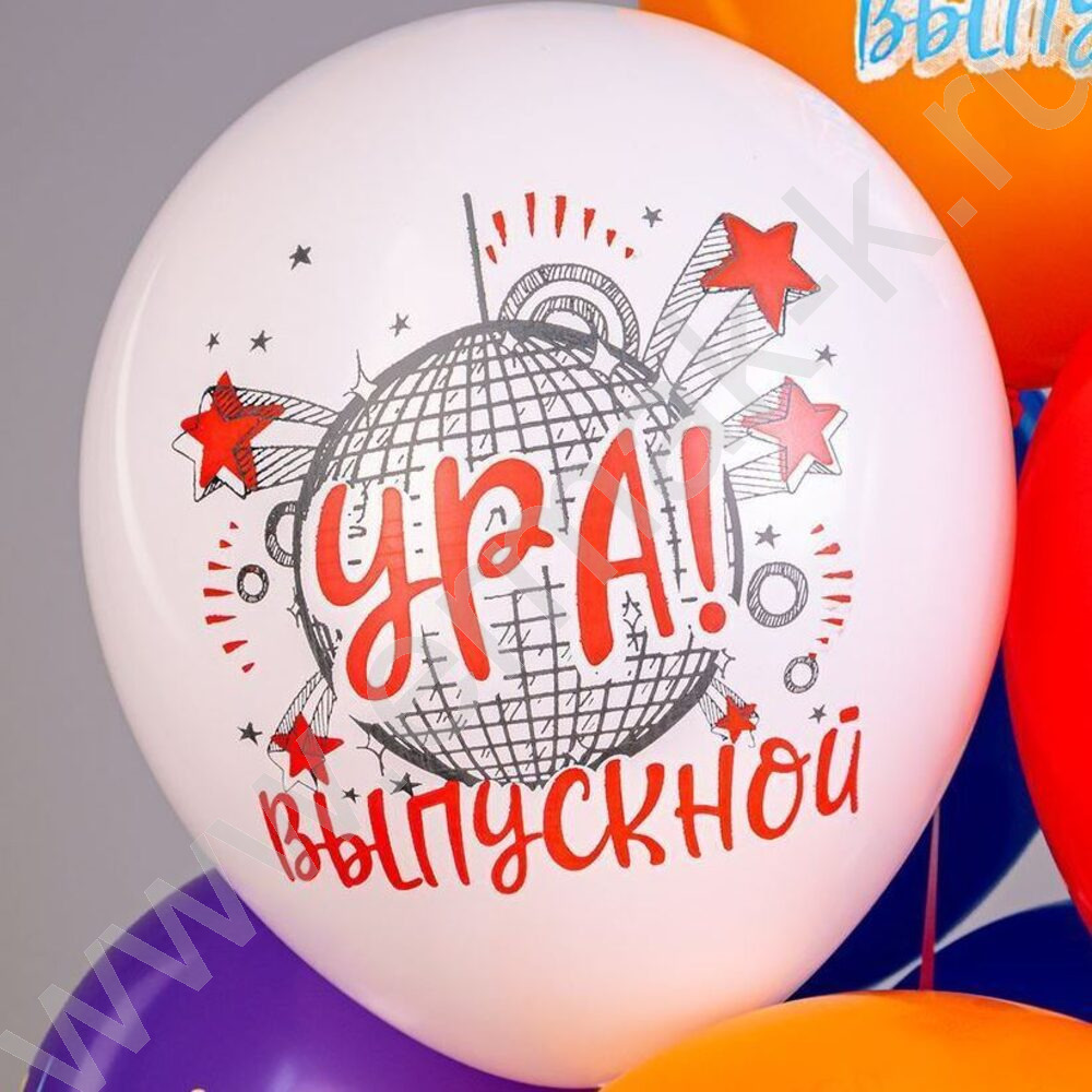 Шар воздушный 12" шелк рис. 1ст. Ура, Выпускной! 5 дизайнов 2 цвета