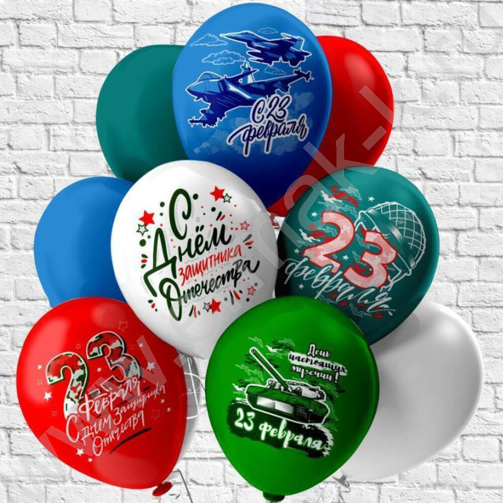 Шар воздушный 12" шелк рис. 1ст Праздник 23 Февраля! 2цв. 5дизайнов