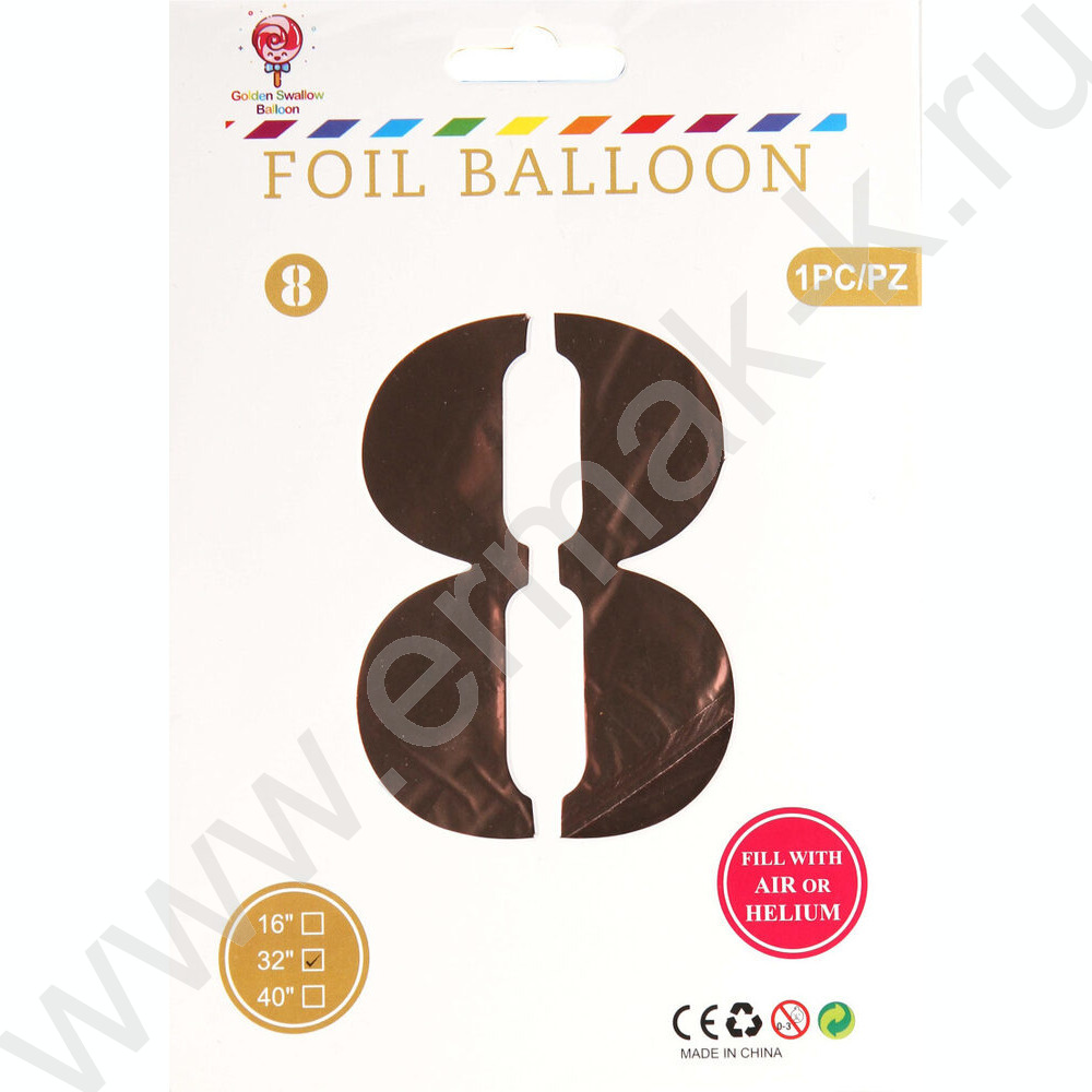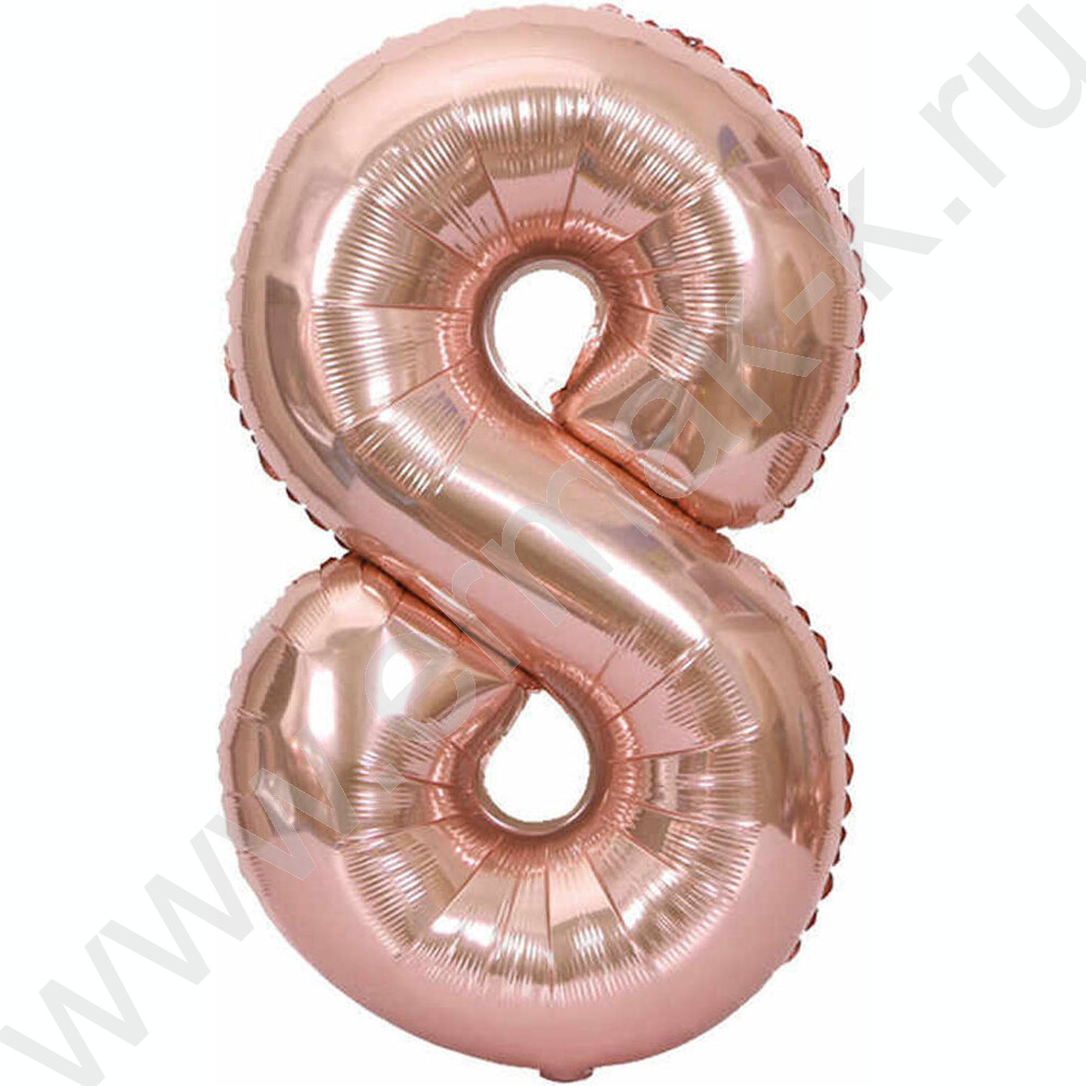 Шар воздушный фольгированный Цифра 8 80см розовое золото