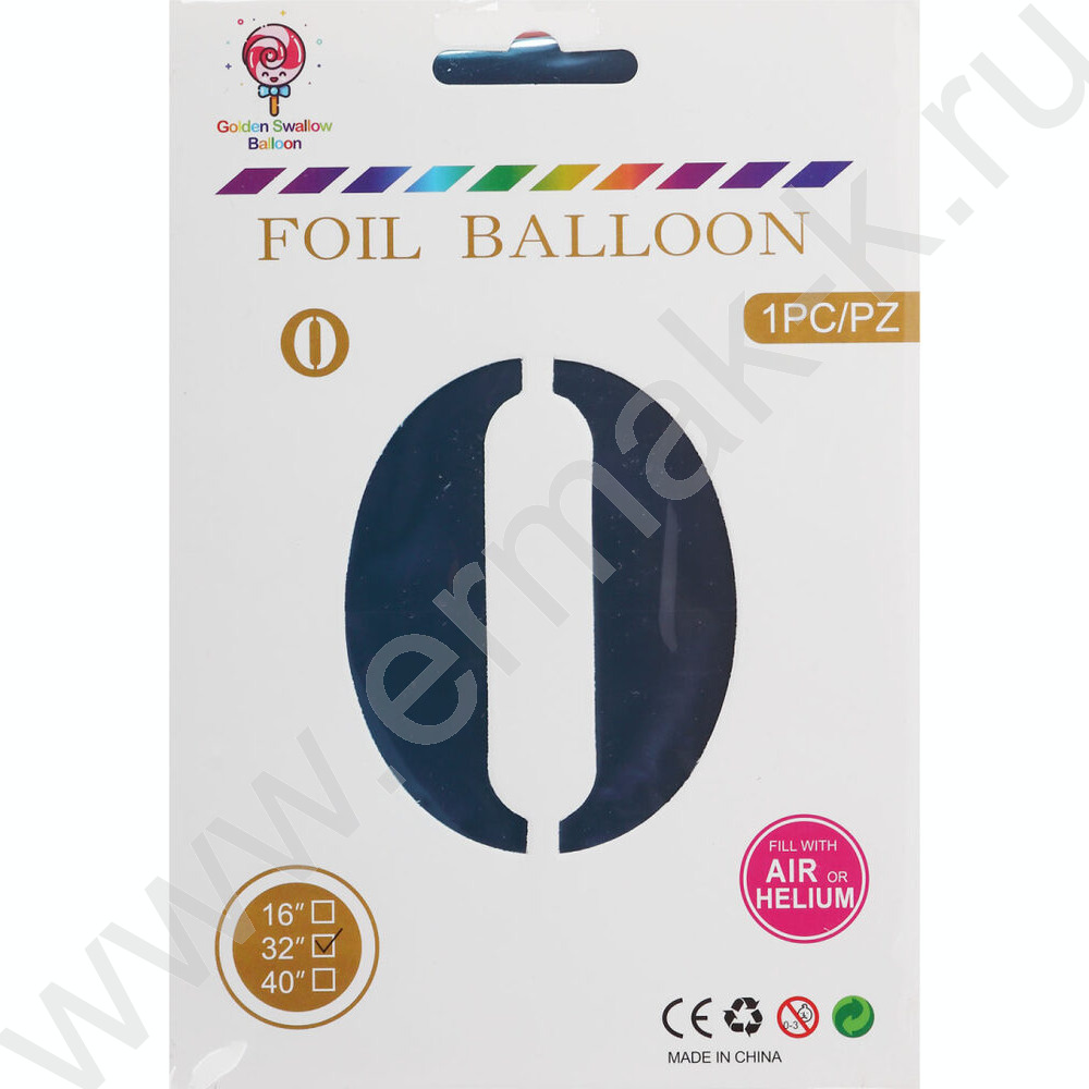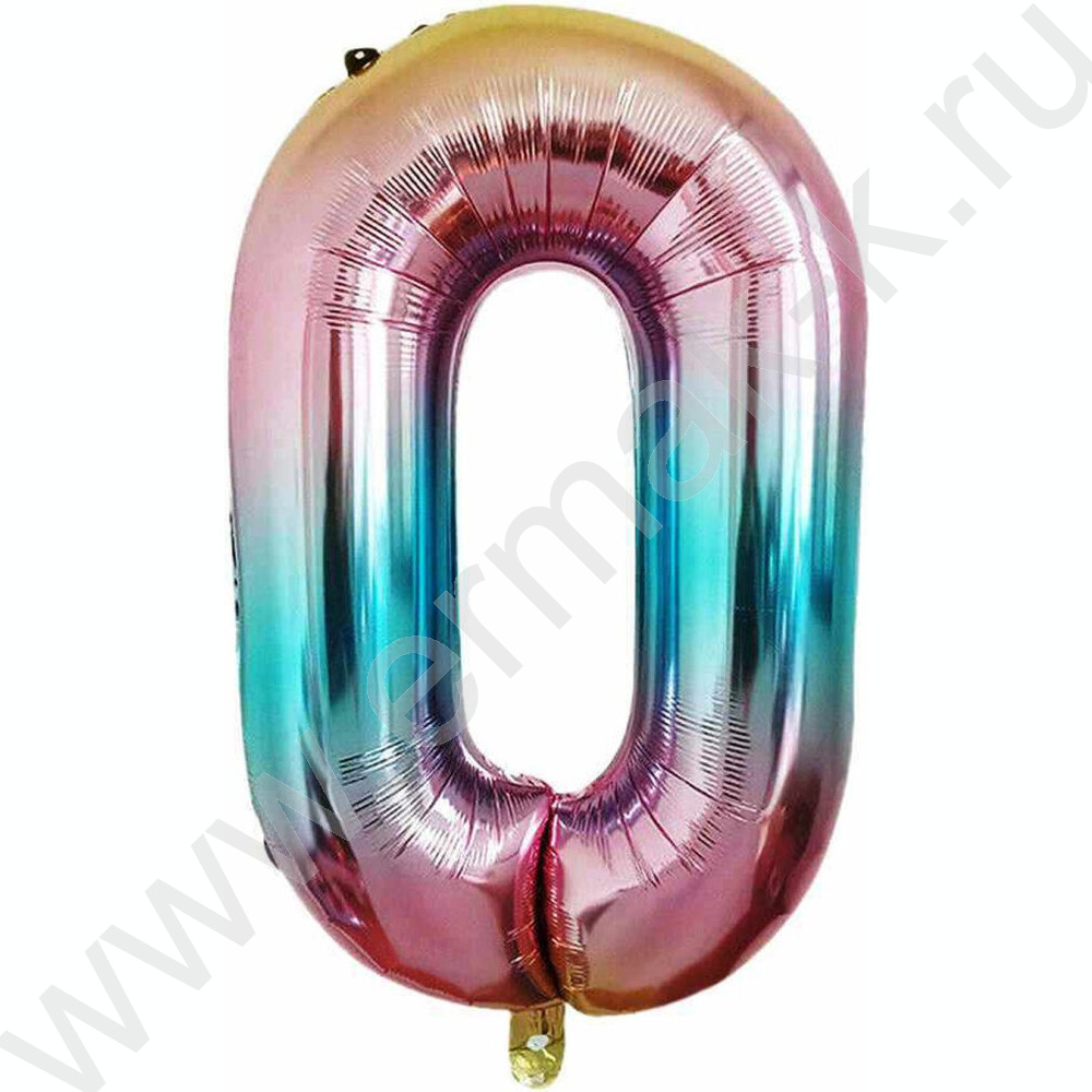 Шар воздушный фольгированный Цифра 0 80см радужный