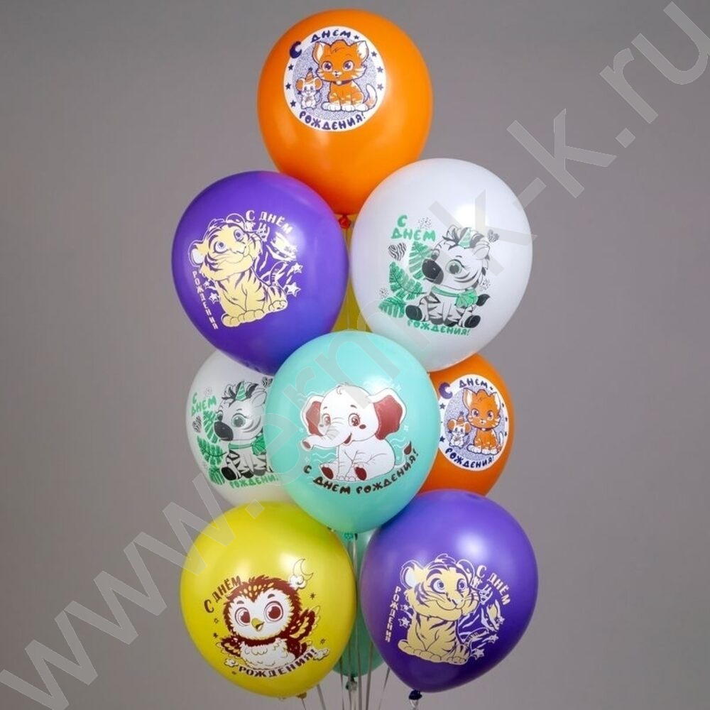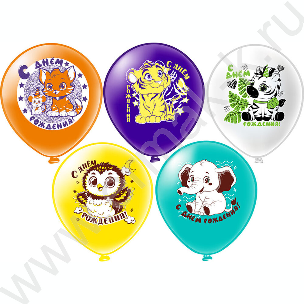 Шар воздушный 12" шелк рис. 1ст. СДР! Животные малыши! 5 дизайнов NEW