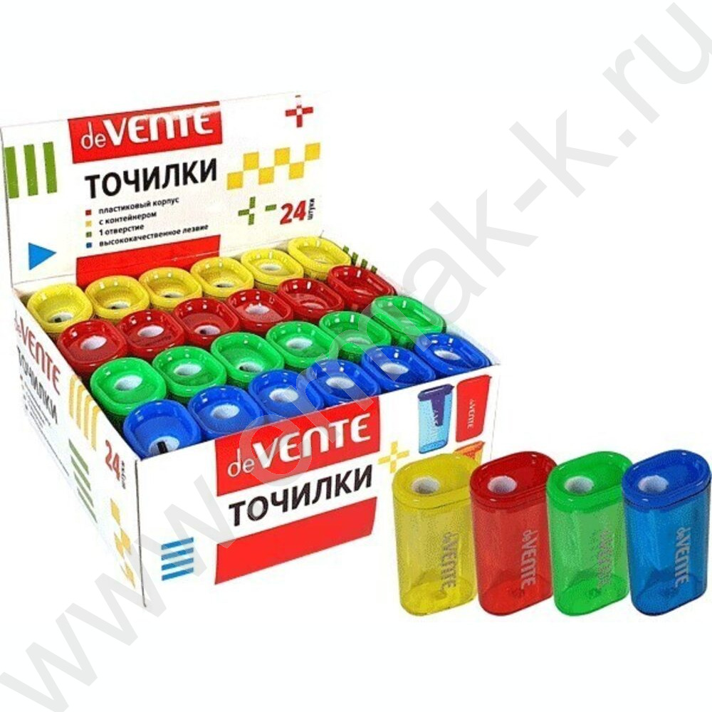 Точилка 1отв. пластик/с контейнером /ассорти прямоугольная высокая