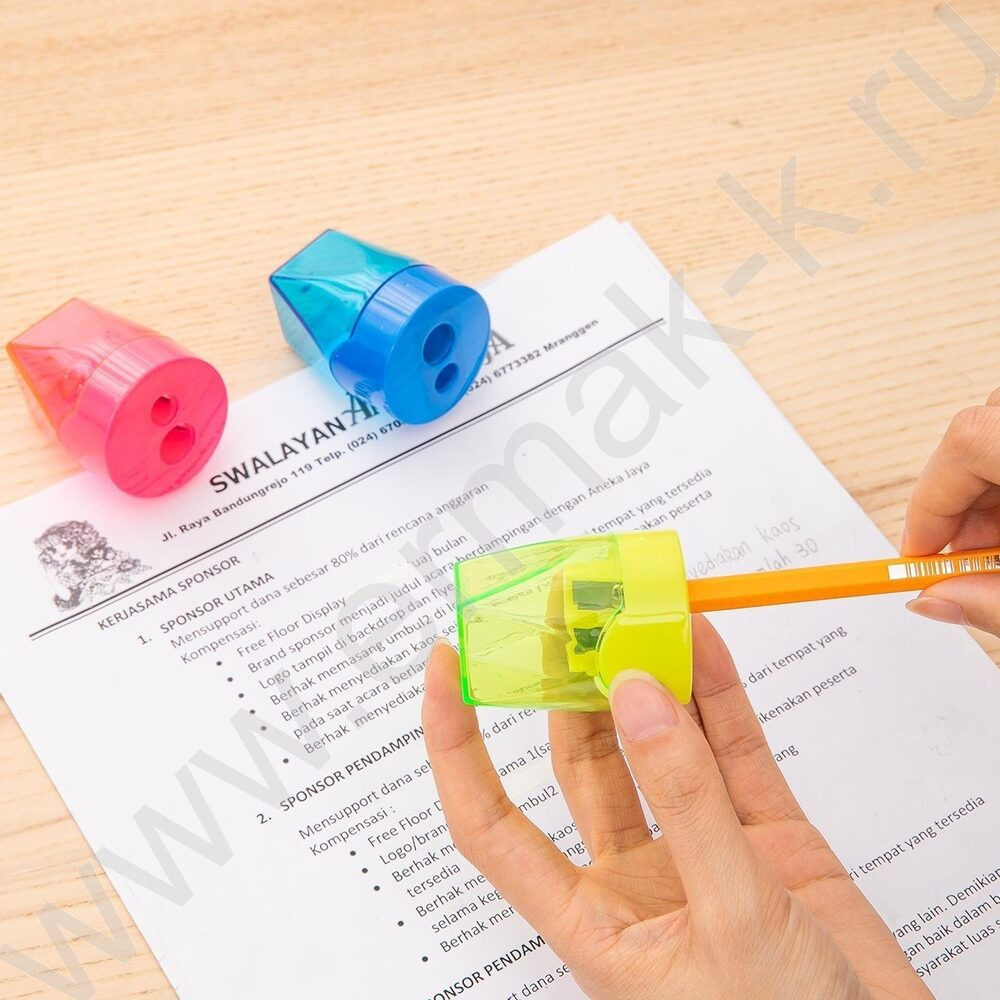 Точилка 2отв. пластик, ассорти /дисплей