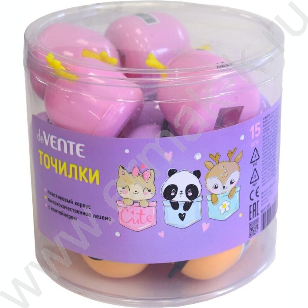 Точилка 1отв. пластик/с контейнером/ Cuties /в форме оленя, панды и кота /ассорти