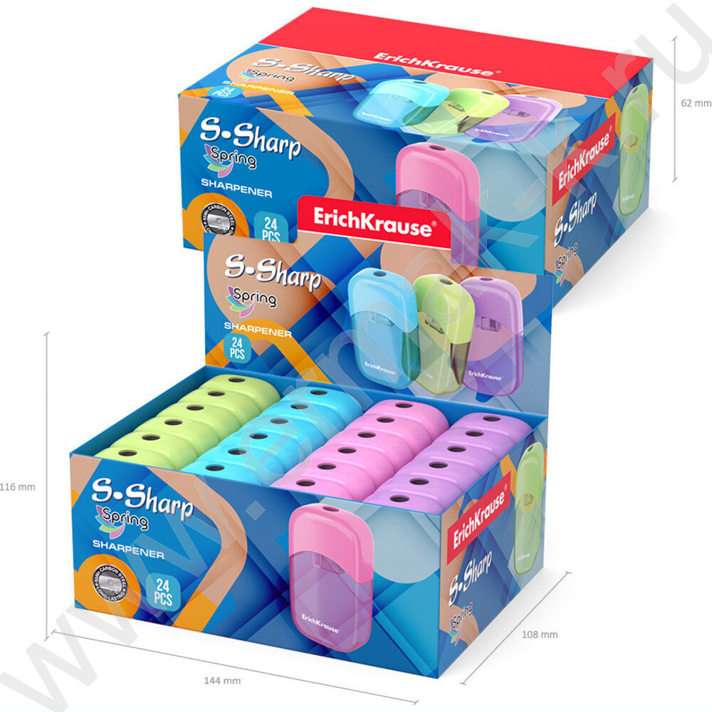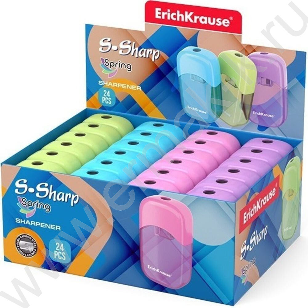 Точилка 1отв. пластик S-Sharp /с контейнером /ассорти