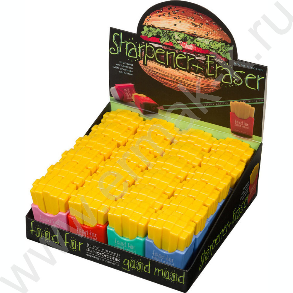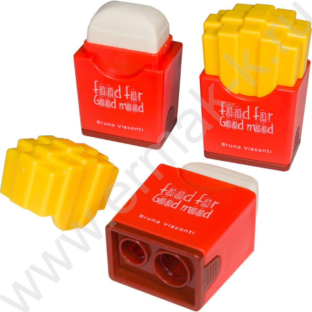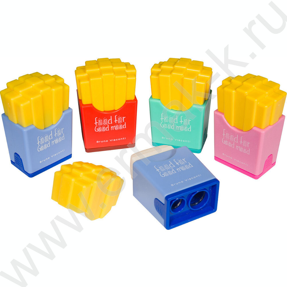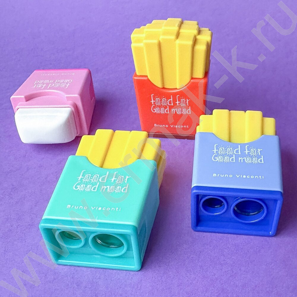 Точилка 2отв. пластик/с контейнером+ластик/ Good Mood.Картошка ассорти