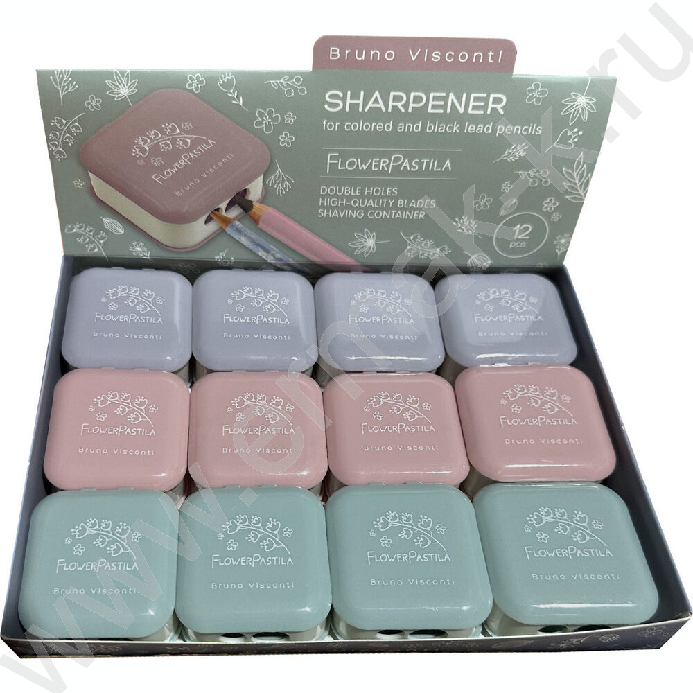Точилка 2отв. пластик/с контейнером/ Flower pastila 3вида