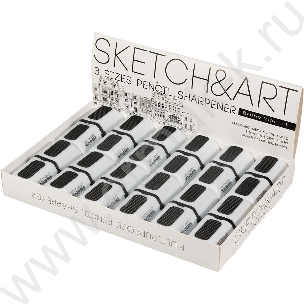 Точилка 3отв. разного диаметра метал+пластик /с двумя контейнерами/ Sketch&art