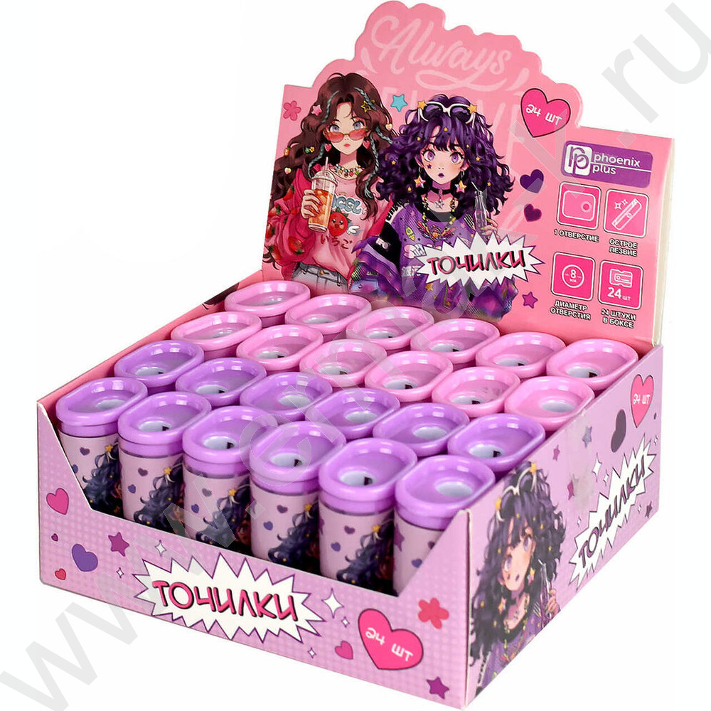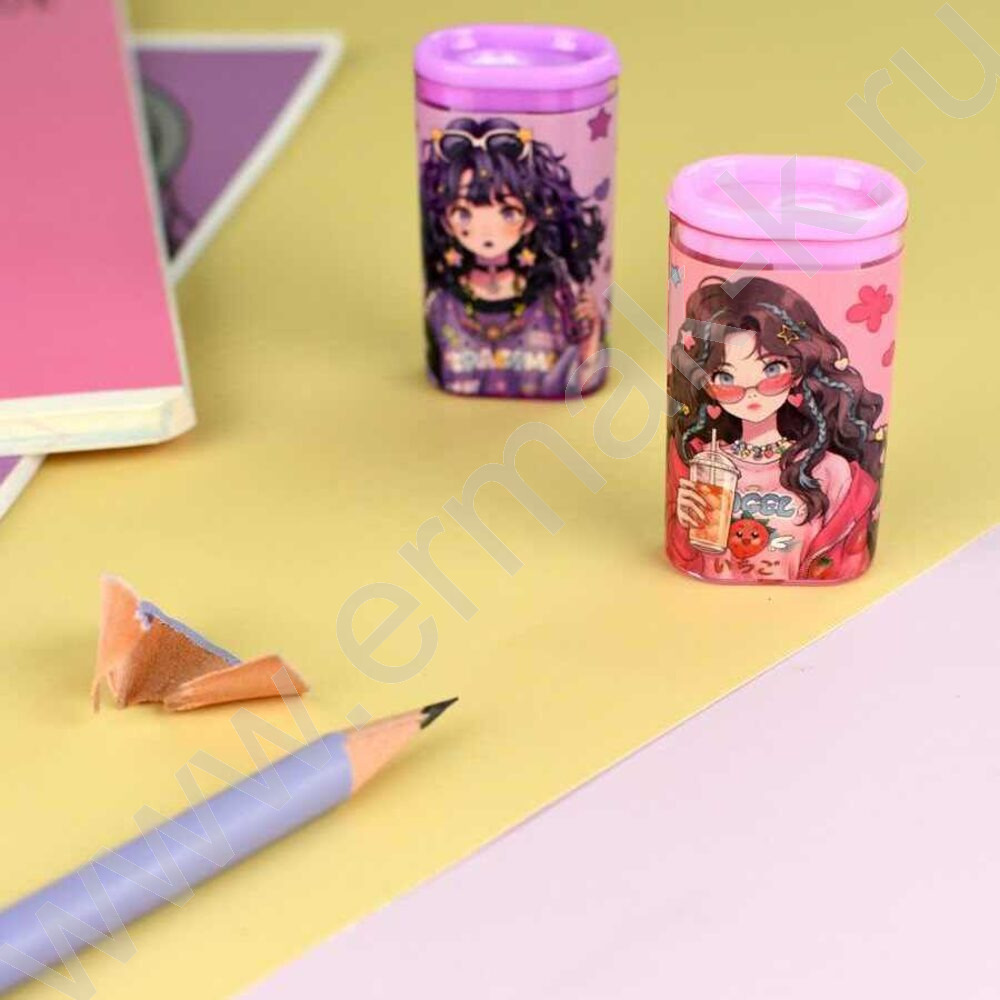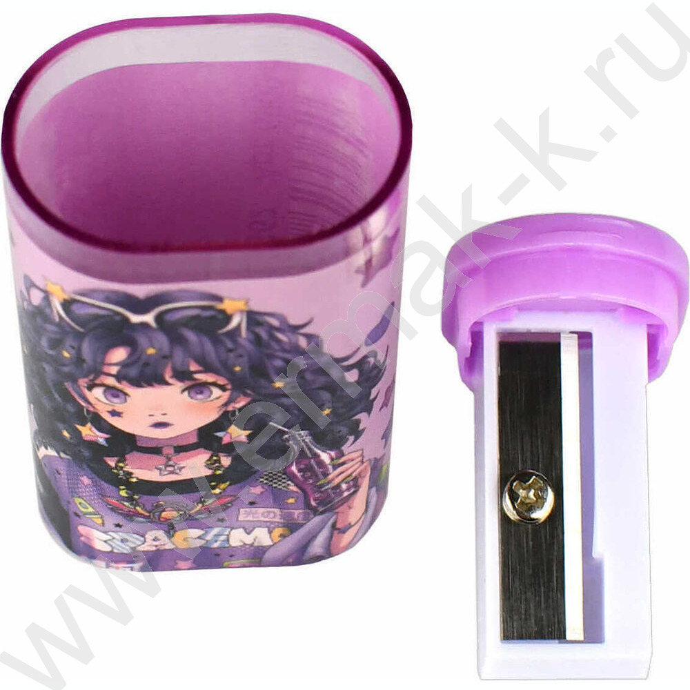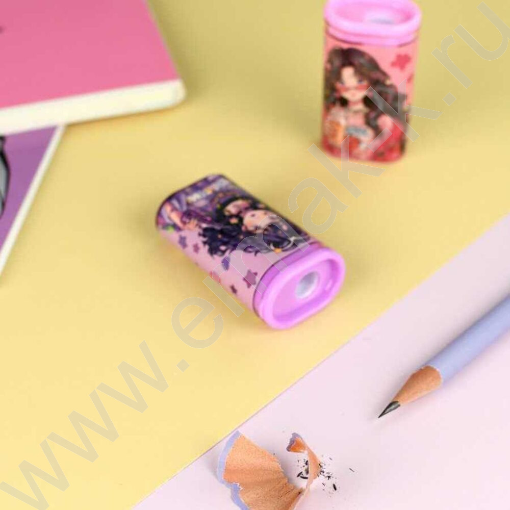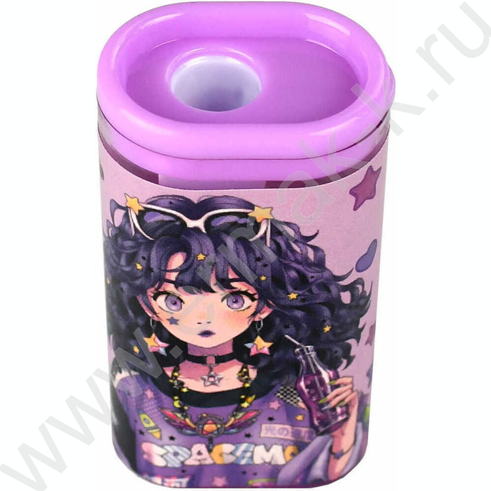 Точилка 1отв. пластик "Модницы" /с контейнером /ассорти