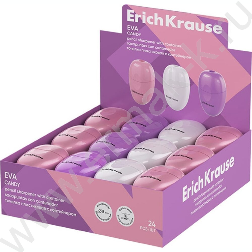 Точилка 1отв. пластик Eva, Candy /с контейнером /ассорти