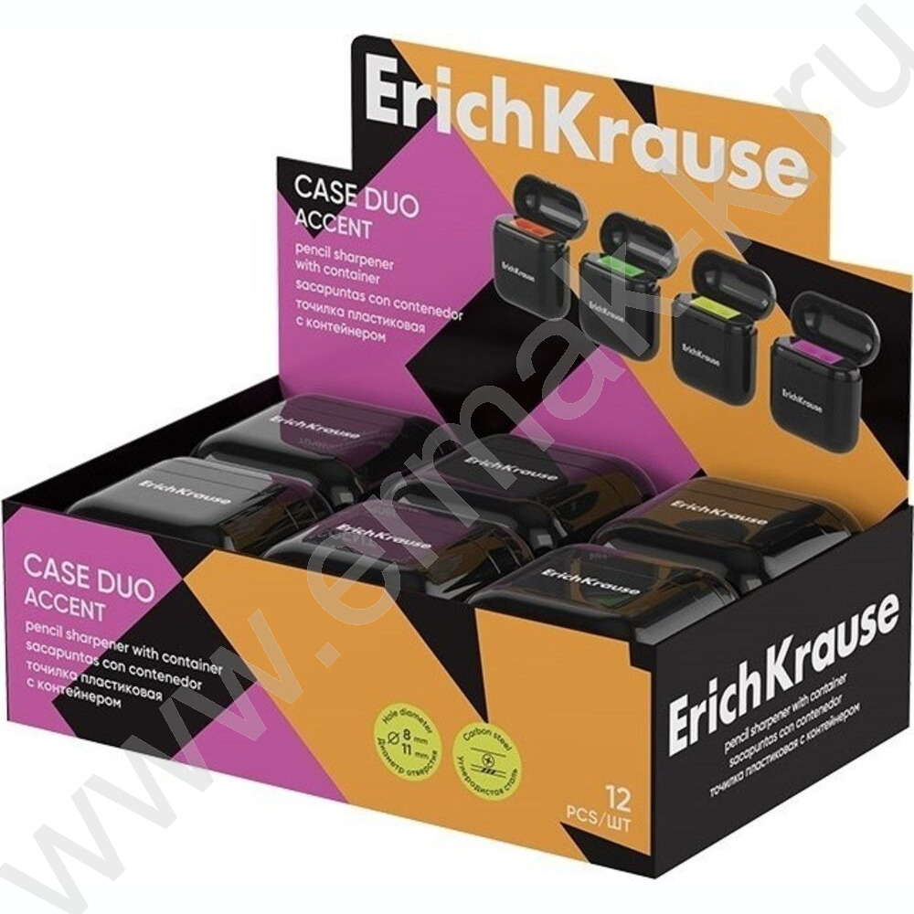 Точилка 2отв. пластик Case Duo, Accent /с контейнером /ассорти