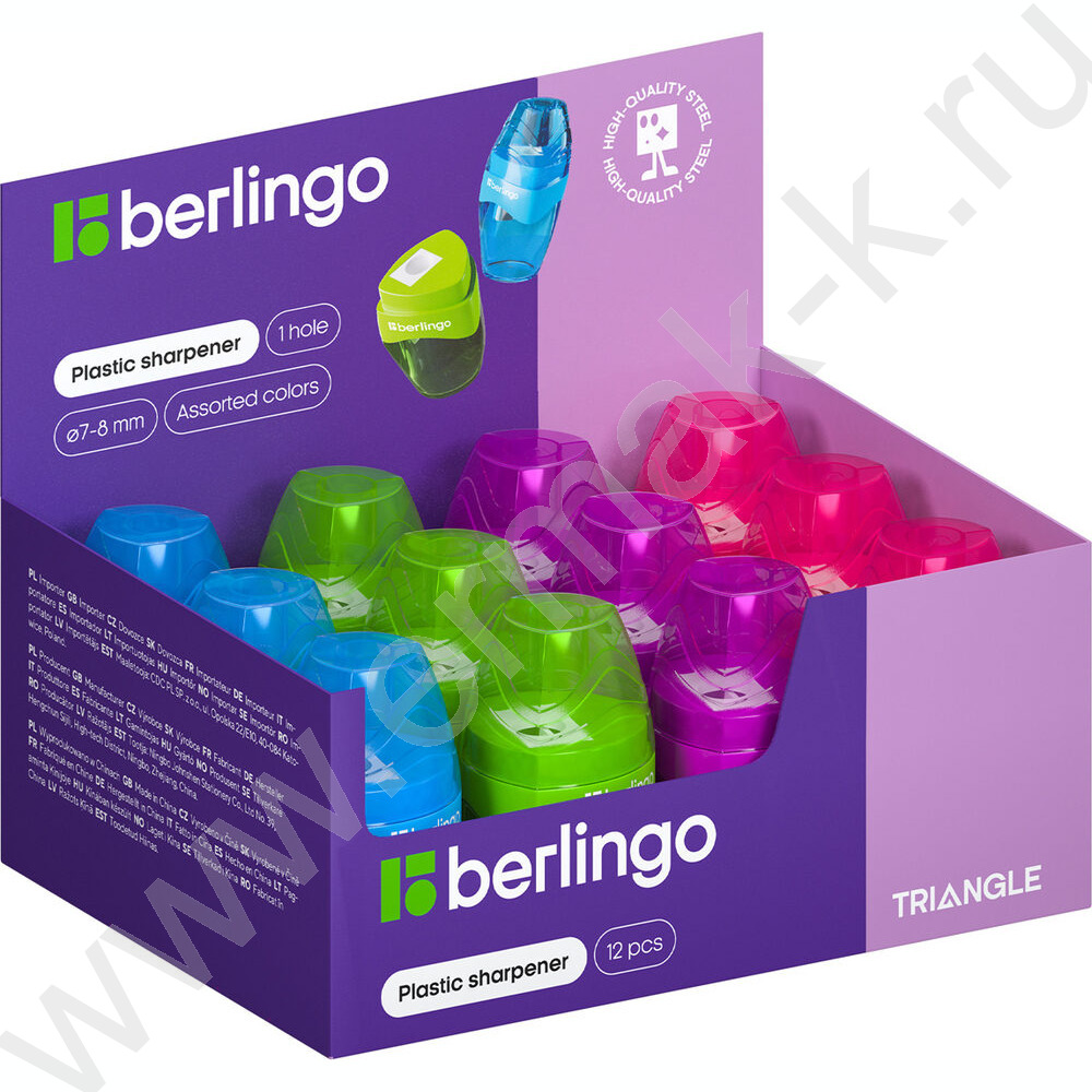 Точилка 1отв. пластик "Triangle" /с контейнером /ассорти