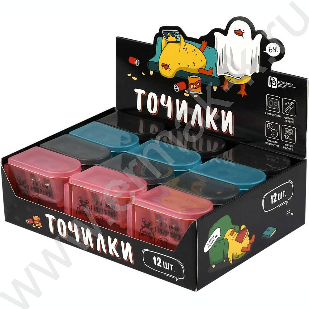 Точилка 2отв. пластик "Городские истории" /с контейнером /ассорти NEW